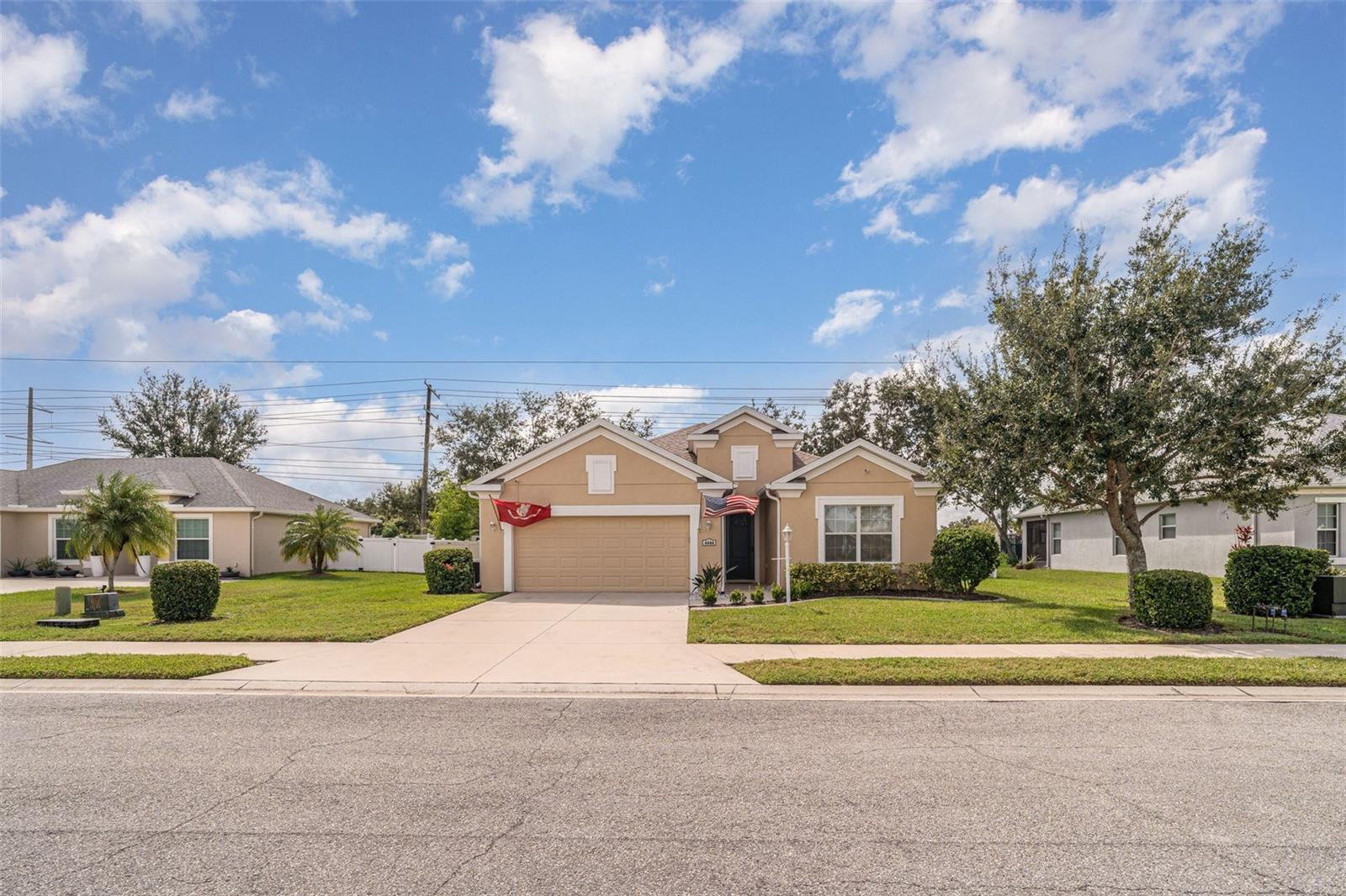 Welcome to this stunning 3-bedroom, 2-bathroom pool home featuring a split floor plan and numerous upgrades throughout. The spacious primary suite includes an en suite bathroom with water closet, large walk in shower with ADA fixtures and two walk-in closets, bedrooms 2 and 3 are generously sized in the front of the home. The kitchen boasts granite countertops, dark cabinetry with crown molding, stainless steel appliances, and a cozy eating nook. Custom blinds adorn every window, adding a refined touch.The kitchen and family room combo overlook the heated saltwater pool (2022) and fully fenced yard, perfect for entertaining and family fun. The birdcage enclosure and top-of-the-line Hayward Heat pro System allow for year-round enjoyment. Exterior upgrades include leaf guard gutters, a French drain for improved drainage, two SunSetter lighted retractable shades, and a Category 5 hurricane-rated remote control shade to protect the tri-fold sliding doors. Patio furniture, grill, and fire pit convey with the home.Inside, you’ll find carpet in the bedrooms and ceramic tile in all wet and common areas, a brand-new roof (2025), a whole-house water softener, closed-circuit security system, and free satellite TV.Located in a quiet community with low HOA and no CDD, this is truly a move-in ready home offering years of low-maintenance living. And if the features aren’t enough—this property also comes with a 4.5% VA assumable loan, making it an incredible opportunity for qualified buyers.Don’t miss your chance—schedule your private showing today! Moments from the Highways, shopping, and fresh produce stands.
