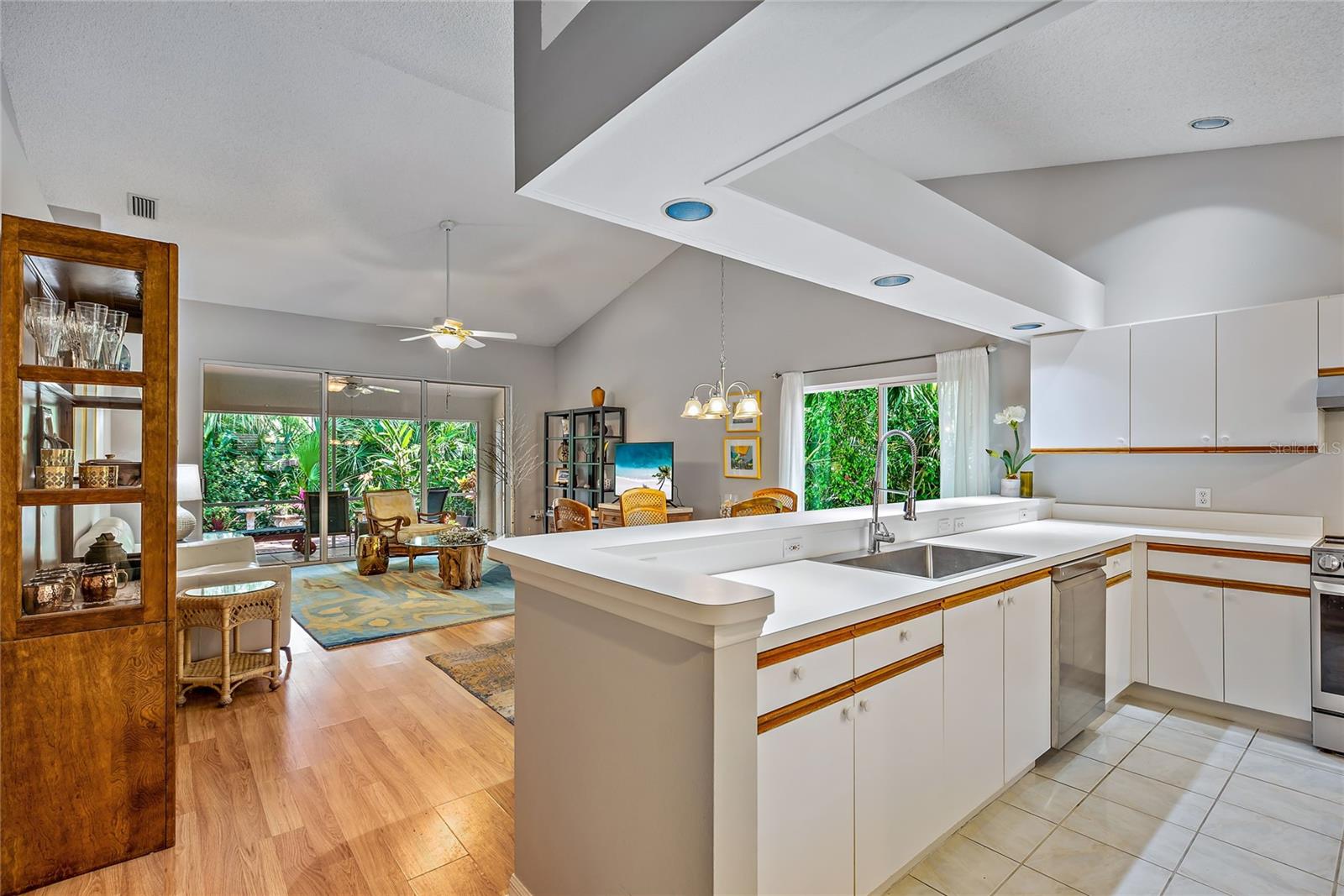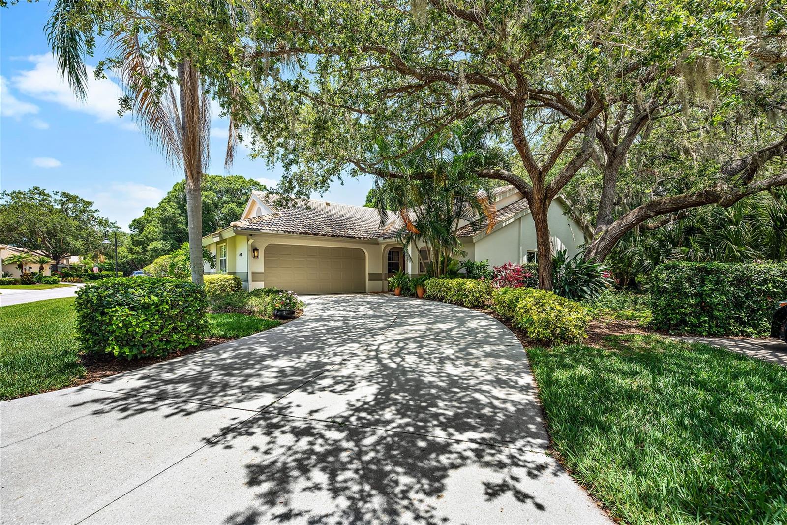 Awesome villa in a beautiful, treed, private community with only 100 homes is now available in Tivoli Village. This well maintained 2bed/2bath plus den/office villa with 2 car garage sits in a lush green setting yet has close access to UTC, I 75, Benderson Park, SRQ, and still only 18 min drive to downtown Sarasota. Enjoy the open kitchen, dining, living room with cathedral ceiling and lots of sunlight. The kitchen includes newer stainless appliances, slide-out shelving in most cabinets and small dinette area. The six foot kitchen counter separates it from the dining area which flows into the large, comfortable living space with sliders out to the enclosed lanai. Pavers extend beyond the lanai to a charming, outdoor tropical oasis featuring native Florida plants and a lovely tiled cement table and benches. The spacious master suite sits at the back of the villa with an updated master bath with dual sinks, granite countertops and a walk-in shower with bench. The split bedroom plan offers you and your guests privacy with the bedroom and bath at the front of the home. The spacious den/office has a skylight and closet. The HOA fees seem high, but they cover many expenses that as a personal homeowner would cost you much more. The list of costs covered is attached to this listing. Ask your agent to see it. But here's just a few...property damage insurance, exterior home power washing and painting, total roof replacement!! plus roof repairs when necessary, all front lawn maintenance and irrigation. This home was painted in Feb2023, and had new AC system in Apr2023. Tivoli Village is a beautiful community with 4 spring-fed lakes, fishing, majestic oak trees and a peaceful nature trail. But the best feature of this community are your neighbors!...so welcoming, helpful and fun! Come see for yourself! - Virtual Tour: https://www.propertypanorama.com/instaview/stellar/A4662740
