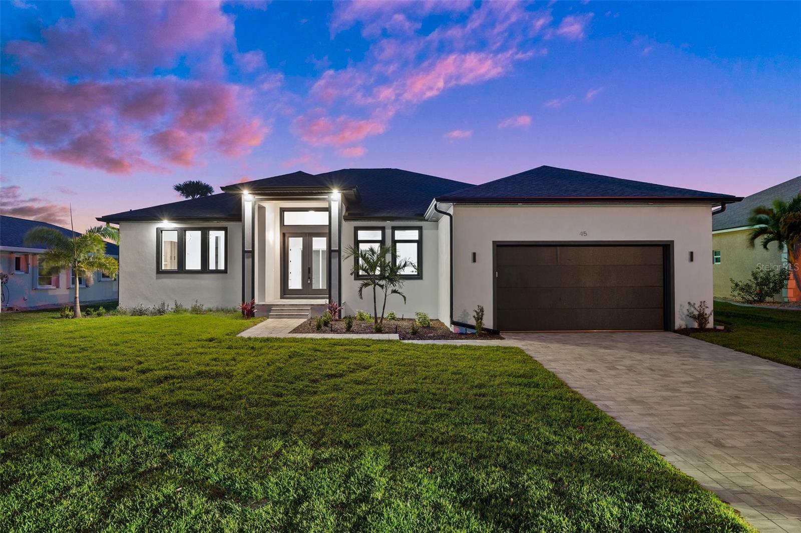 MODERN living in this brand-new Rotonda West residence is proof you can really have it all! Enviably set on a coveted WATERFRONT lot in a premier GOLF COMMUNITY, this incredible abode exudes impressive curb appeal enhanced by an impeccably landscaped front yard. Revel in the peace of mind with integrated SECURITY CAMERAS. Through the glass-inlaid double doors, discover a magnificently crafted interior finished in rich wood accents, crisp white tones, custom floating cabinetry, and beautiful tile flooring. High tray ceilings adorned with recessed lighting create a welcoming atmosphere across the open-concept living areas, anchored by expansive glass sliders that inspire seamless indoor/outdoor entertaining. Chic lighting fixtures cast a warm glow over the dining alcove and the kitchen’s waterfall island. With top-notch stainless steel appliances, handsome cabinets, and sleek quartz countertops, it’s the ideal culinary space for an avid cook. Breathtaking views greet you in the four well-sized bedrooms, all graced with ample storage and built-in organizers. Two are ensuite, including the primary retreat which has two walk-in closets and an exceptional bath with dual vanities, a frameless shower, and a spa-like freestanding tub. Step outside to the covered lanai where you can relax and enjoy festive gatherings by the screened-in HEATED SALTWATER POOL against an idyllic backdrop of the FRESHWATER CANAL and lush fairways. Additionally, there’s a laundry room, an attached 2-car garage. As perks for living here, you’ll have access to its world-class amenities like the five golf courses, tennis courts, parks, and scenic greenways. Plus, Charlotte County Sports Complex, shopping, dining, and the pristine beaches of Englewood, Manasota Key, and Boca Grande are within easy reach. Come for a tour while this fantastic home is still available!
