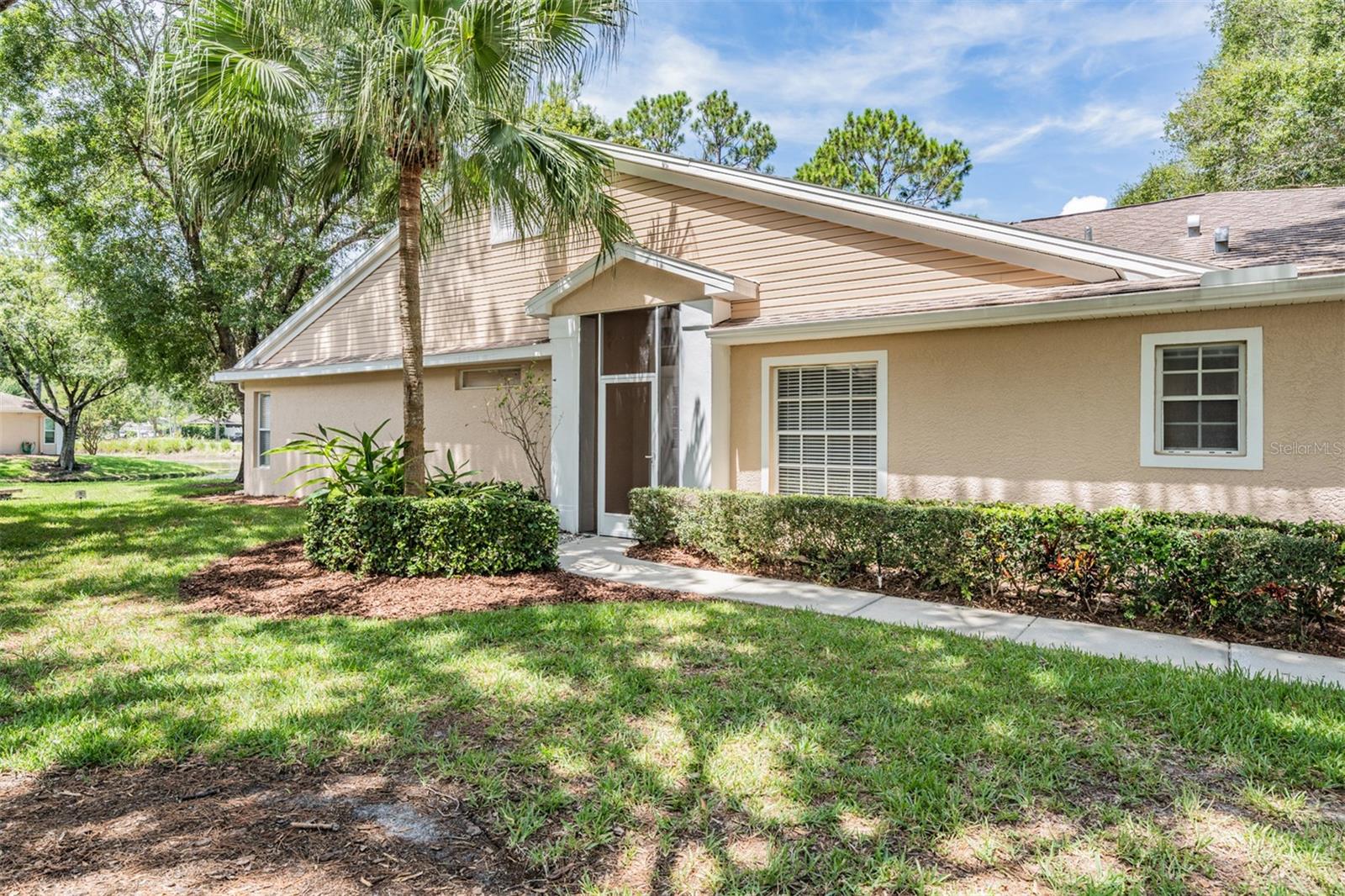 One or more photo(s) has been virtually staged. Honey Stop the Car! Don't Miss Out on this Updated 3 Bedroom, 2 Bath, 1 Car Garage End Unit Villa in Coventry Village. Not in a Flood Zone but only a short drive to the water and beaches! This Open floor plan is a perfect blend of comfort, convenience and Florida Charm with high Vaulted Ceilings and split bedrooms providing privacy. Featuring Freshly Painted Interior, New Wood-like flooring, New appliances and plenty of living space with a Great Room and Dining Room for entertaining. The high ceilings and large sliding glass doors flood the space with lots of natural light, creating a warm and inviting atmosphere. The Large kitchen features New Stainless Steel Appliances, plenty of Counter space, Island, breakfast bar & large breakfast Nook. Showcasing a Large Master suite with sliders to Patio, 2 walk-in closets & en suite Bathroom with Garden tub & step-in shower. 2 Bedrooms at the front of the home share an adjacent Bath with Tub/shower. Inside Laundry closet with washer & dryer for convenience. Step outside to your private Lanai & tranquil Pond Views. This is the perfect area to relax in the sun with your morning coffee or host barbecues and gatherings with friends and family. Water Heater 2024. HOA is $498 a month and includes Community Pool, Ground Maintenance, Cable, Internet & Trash. Super location, close to shopping, Publix, Restaurants, Medical facilities, Two Airports, County Parks, and not far to the beaches. Enjoy everything this Villa has to offer.