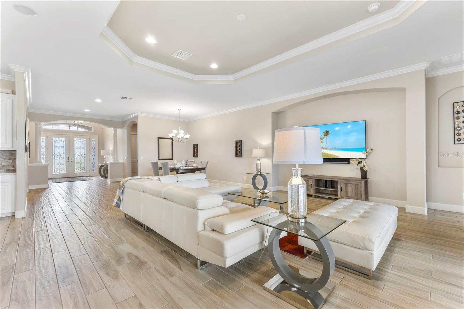 - Interior Features: Coffered Ceiling(s), Crown Molding, Dry Bar, Eat-in Kitchen, High Ceilings, Kitchen/Family Room Combo, Open Floorplan, Walk-In Closet(s), Window Treatments