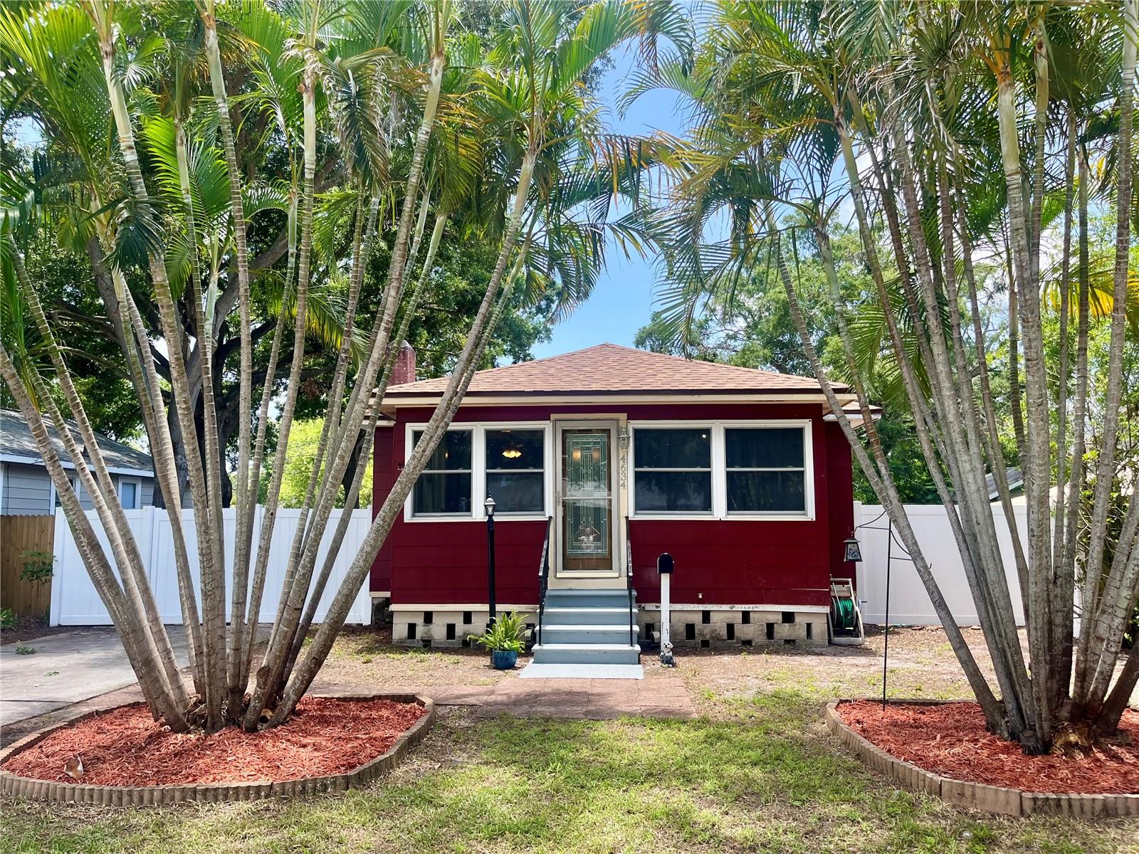 Charming Bungalow in Northeast St. Petersburg (non-evacuation zone) this updated home has two bedrooms with a bonus area perfect for an office. Easy care flooring, crown molding, bright and cheerful kitchen, most of the windows and doors were replaced, new roof (2025), roomy attic has new plywood flooring for extra storage with built in ladder, oversized lot with PVC fencing, sprinkler system on well, a detached two car garage with alley access. There is room for your RV, Boat and a Pool. Close to the vibrant downtown and 15 mins to world class beaches. Easy access to Interstate 275 and 15 mins from International Airports.