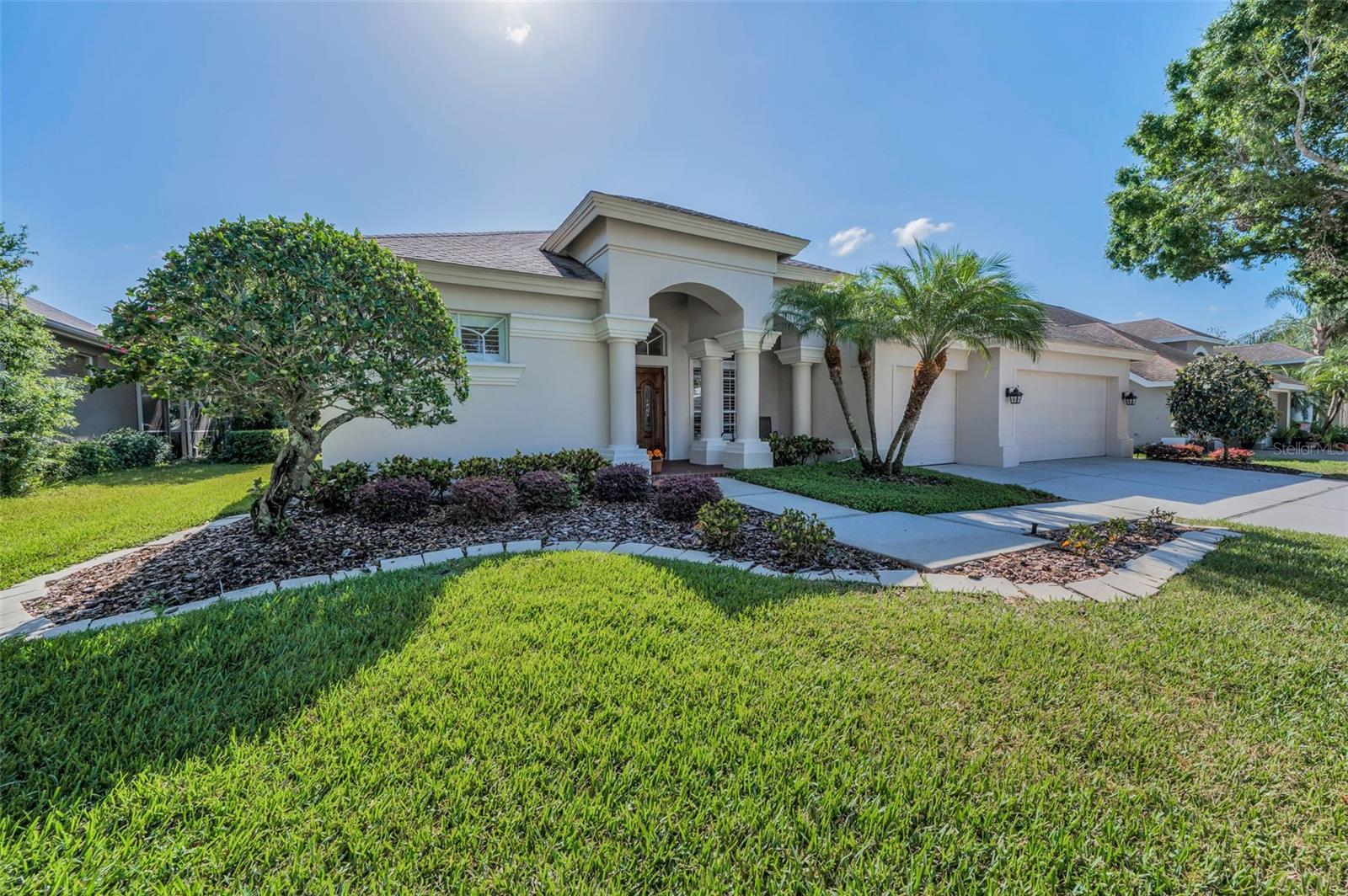 This beautiful Mark Rutenberg built 4-bedroom, 3-bath home is located in Aylesford—one of the most desirable communities within Lansbrook. This thoughtfully designed split-bedroom floor plan includes a formal living and dining room, a versatile 4th bedroom (that can be used as an office/den), a spacious family room, and a gourmet-style island kitchen. The attention to detail within this masterpiece is easily detected as soon as you enter the home. The sellers, who are original homeowners, meticulously cared for this lovely home which is move in ready. The kitchen is a chef’s dream, featuring a large breakfast bar, built-in double convection ovens, generous storage options, and a charming window-front dinette area. The family room is perfect for relaxing or entertaining, complete with volume ceilings, a cozy wood-burning fireplace, and abundant natural light. Multiple sliding glass doors open to a serene, screen-enclosed lanai and pool deck with attractive pavers—an ideal retreat for outdoor enjoyment. The sellers not only handpicked this prime lot to build their dream home on, but they also incorporated customizations such as crown-molding and plantation shutters throughout the home. an "over-sized" laundry-room with a large storage pantry and closet, adjusting door placements (for privacy purposes), adding a double bowl sink in guest bath, extending the pool deck lanai to cover rear entry into pool bath. Additional highlights include a freshly epoxied 3-car garage (2024) with ample room for vehicles, recreational gear, and storage. Recent upgrades provide peace of mind: Roof installed August 2019; HVAC System installed March 2021; Pool resurfaced April 2025, new refrigerator (2025) and like new, double convection ovens and dishwasher. As a resident of Lansbrook, you’ll enjoy access to a wealth of amenities, including a public golf course, YMCA, recreational park with volleyball and basketball courts, and a private boat ramp with direct access to Lake Tarpon. This exceptional home offers a lifestyle of comfort, convenience, and elegance. With too many features to list, this is truly a must-see!