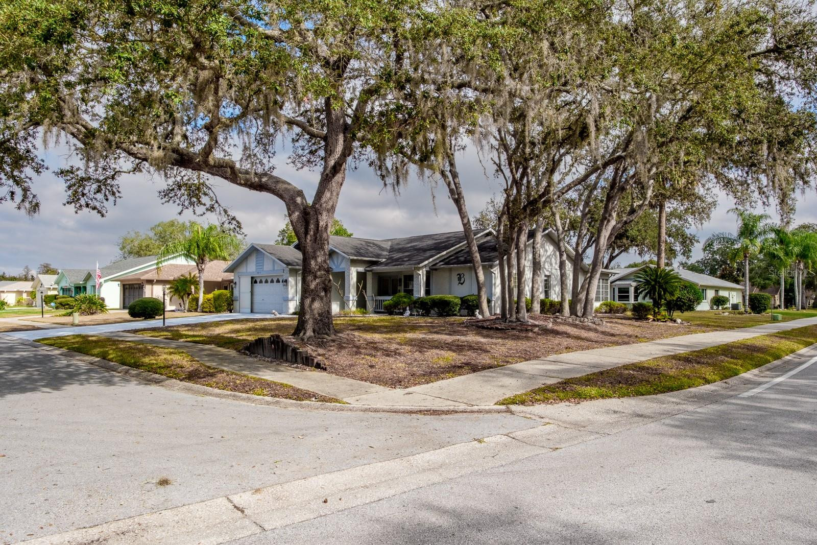 Retirement paradise in desirable Heritage Lakes… offering over 1800 sq ft of fine Florida living with 2 bedrooms, 2 bathrooms and a 2-car garage. Enter from the covered front porch through the leaded glass accented doors to the spacious living room/dining room combination featuring luxury vinyl flooring. Kitchen boasts a cabinet pantry with butler pull out drawers, additional upper cabinets for storage, a ceran top range, built in microwave, side by side refrigerator and dishwasher, and features a breakfast bar and convenient pass-through window to the Florida Room. Kitchen overlooks the fabulous family room with a ceiling fan and a continuation of the luxury vinyl flooring. Split bedroom floor plan is ideal for privacy. The primary bedroom is located just off the dining room. It is accented by wood flooring, a ceiling fan, TWO walk-in closets and a lovely ensuite bath boasting dual vanities with dressing/makeup area and an indulgent walk-in shower with a built-in seating ledge. And the primary bedroom has a private entrance to the Florida room through the sliding glass doors. Secondary bedroom is located on the opposite side of the home and features laminate flooring, a ceiling fan and large walk–in closet. The perfectly situated hall bath features a tub/shower combination and charming pedestal sink. Living and entertaining space is extended with the huge Florida Room... airconditioned for year-round comfort! New washer and dryer are located in the garage. Additional updates include AC 2023, Luxury Vinyl Flooring 2024, Roof 2014. Heritage Lakes is an active community featuring a wonderful, heated pool and spa, tennis/pickleball courts, shuffleboard, clubhouse with library, crafts, pool & billiards room and a multitude of events including dances, BBQ’s and various social clubs… so much fun! Close to shopping, restaurants, medical and thriving downtown New Port Richey and its breweries, shops, eateries and festivals. And of course, the famed Gulf beaches are nearby! Tremendous location and desirable 55+ community. Live the casual Florida dream!!