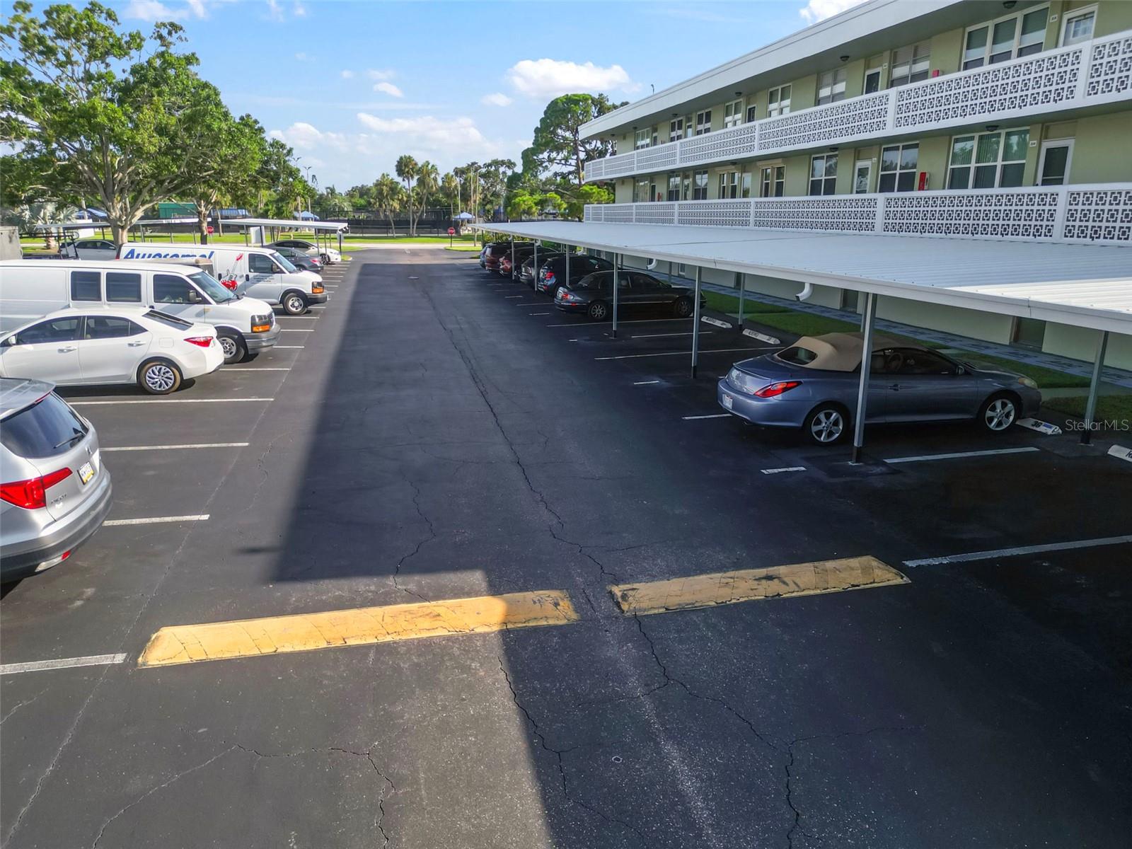 This unit comes with one covered parking space, shared laundry and private storage on each floor, and access to a clubhouse, heated community pool, and shuffleboard courts.