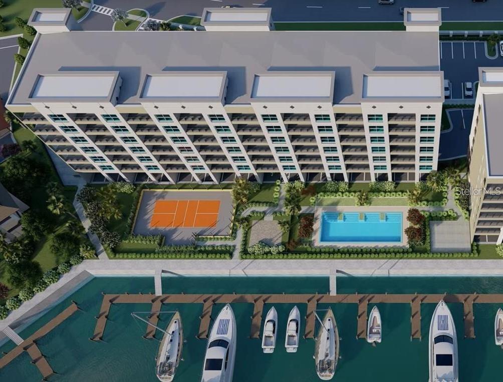 One or more photo(s) has been virtually staged. Pre-Construction. To be built. One or more photo(s) has been virtually staged. Pre-Construction. To be built. Accepting Reservations! Introducing Aqua Harbor, an exclusive Legacy Project of two 48-unit, waterfront condominiums, ideally located in the historic community of Gulf Harbors in New Port Richey. Rising approximately 94 feet high, this 7-story, 2 building development offers uninterrupted views from its private balconies. This 2-bedroom, 2-bathroom unit spans approximately 1,346 sq. ft. and features two stunning floor-to-ceiling windows in the Grand Salon, facing east, bathing the space in natural light. Designed for modern luxury, the residence includes an open-air balcony, high-quality kitchen cabinetry with a choice of three cabinet finishes, quartz countertops, luxury vinyl wood flooring throughout, stainless steel appliances, and tall ceilings. Buyers have the flexibility to choose their own ceiling fans and light fixtures, as well as the option to purchase custom closets for a truly personalized touch. Washer and dryer hookups are included in every unit for added convenience. The gated community boasts resort-style amenities, including a luxury swimming pool, grilling stations, pickleball court, private pet park, and a centrally located community elevator for easy access to all floors. Each floor is equipped with a convenient waste chute, ensuring effortless trash disposal. A limited number of private boat slips are available for rent, exclusively for owners and can accommodate most vessels. The community is perched on the "SeaFire Basin", a deep-water canal with a direct, deep-water access to the Gulf! Ideally located near Publix, waterfront dining at Seafire Grill and Sunset Cove, and the vibrant Downtown District, Aqua Harbor offers the perfect blend of elegance and convenience. Built with concrete block construction and reinforced slabs for superior durability, these condos have a low $557 HOA fee covering property, flood, and liability insurance, water, sewer, trash, high-speed internet with a streaming device, landscaping, and building maintenance. Built like a fortress, this building was constructed to withstand high winds and is elevated to prevent flooding. The perfect resort for those looking to downsize to a safe location and stay right in the Gulf Harbors community. Contact us today—our preferred lending team is ready to help make your dream a reality! Taxes are estimated on comparative value.