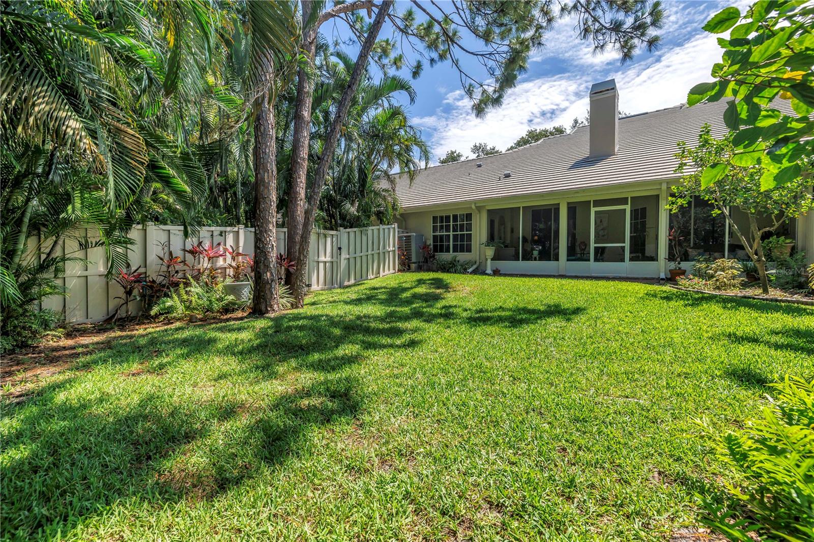 Enjoy outdoor living via 8-ft sliding doors that open to a delightful screened and roofed lanai (200sf). The lanai with dining and living areas overlook a well-manicured grass and flowering garden shaded by mature pine trees. Direct access to the sparkling community pool across the street. Full sized laundry room and oversized 2-car garage with 2 separate doors and openers.