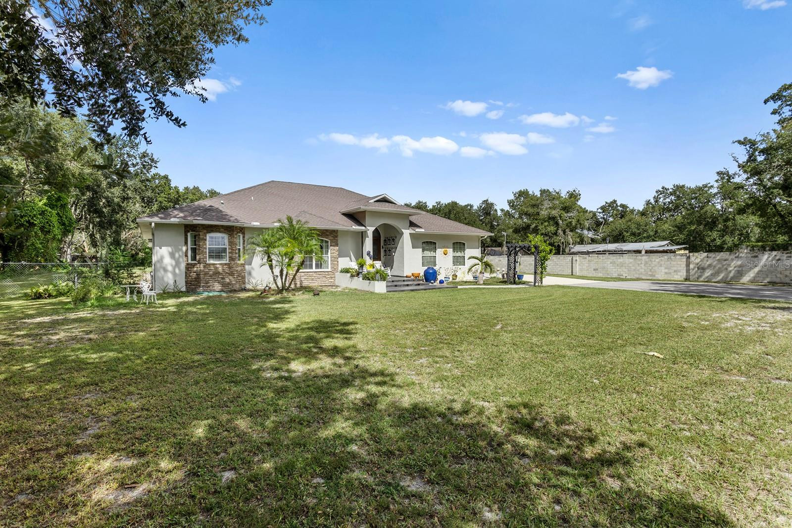 These homes do not come to market that often with separate quarters and newer. Welcome to Slaten Road in beautiful Plant City. This home screams custom build with over 1.37 acres of endless possibilities. Entering onto the property you will be driven to the custom tile porch with night time lighting and large entry doors. Entering you will notice the high ceilings and crown molding running throughout the entire home. The large 24" porcelain tiles expand the rooms to seem larger then they already are. The attached dinning room area boast plenty of room for company or family dinners. Entering into the kitchen you will be amazed by the modern kitchen with granite counter tops, high end stainless steel appliances and cabinets galore. This living room kitchen combo allows for a great flow from dining area to kitchen and living room to kitchen. Just left of the entry way and dining area you will find the primary sweat with rustic floors crown molding and shutter doors. This room also includes large walk in closets and large bath suite with jacuzzi tub, dual sinks and large showering area. Walking to the opposite side of the house adjacent to the living room you enter into the guest bedroom areas. Here you will find another large bathroom with granite counters. Extra bedrooms are large enough for even your king size beds also include large closets for long stays or family uses. Right off of the kitchen and dining room you have two separate ways of exiting the home leading right into a closed in patio still flowing with the large tiles from inside and two granite covered desks. This area would be great for work while viewing the land in the backyard watching for your occasional eagle, crane or other interesting Florida animals that have been sited. After your work is done take another door exiting the home into the covered porch with over 300 square feet of hand laid brick, windows and kitchen setup abilities. This space was intended originally to be screened in or another addition to the home having a block frame. heading to the back yard you will notice the large RV port that comes with electric and sewer connection option. A shed located in the back yard was designed to hold all of your equipment needed to manage this over an acre and quarter property.