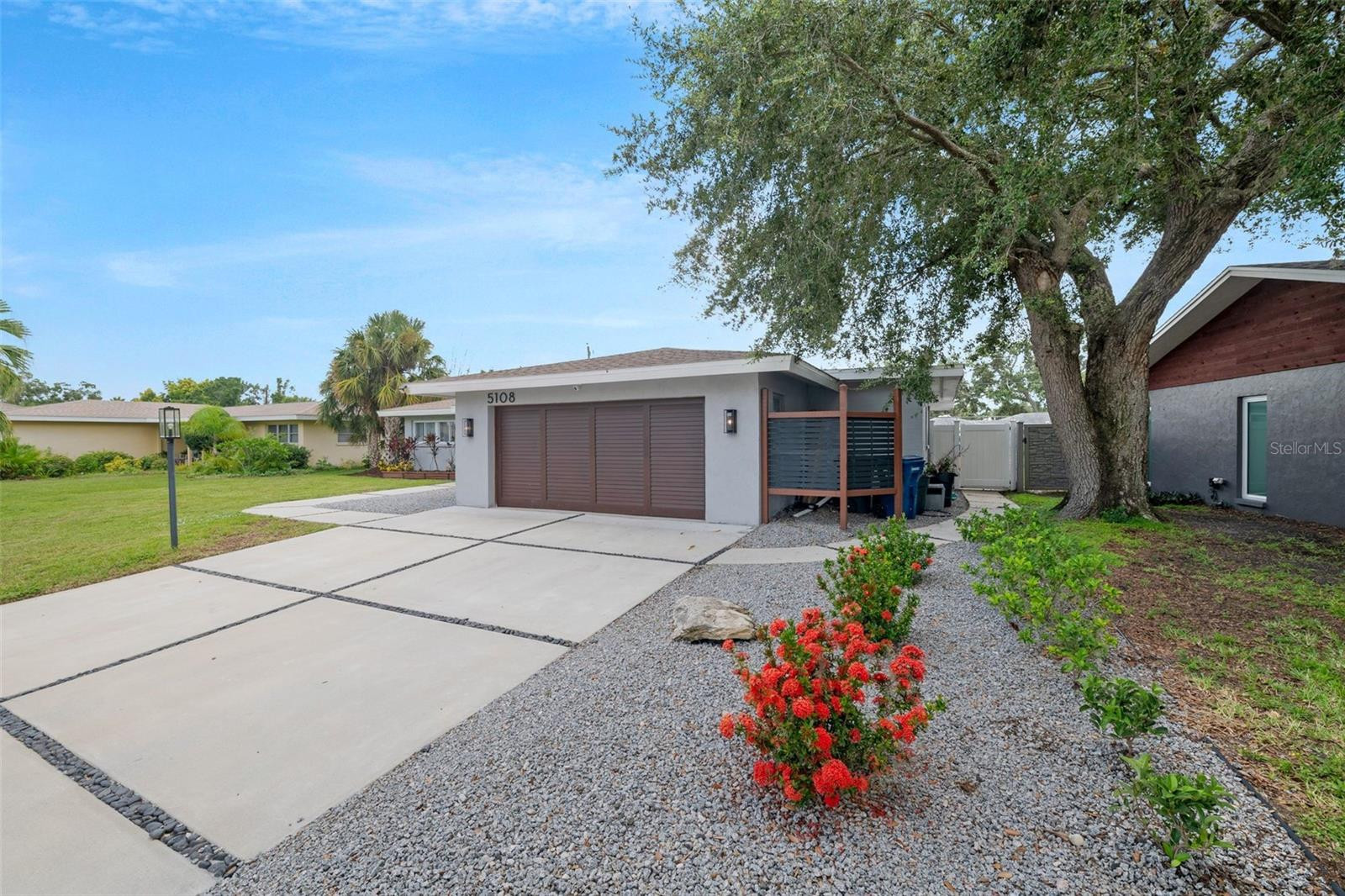 This single-story block construction home sits on a spacious 9,191 sq ft lot with mature landscaping and a wide driveway leading to a two-car garage. Inside, you’ll find an open, light-filled layout with updated flooring, modernized bathrooms, and a tastefully refreshed kitchen equipped with stainless steel appliances and granite countertops.