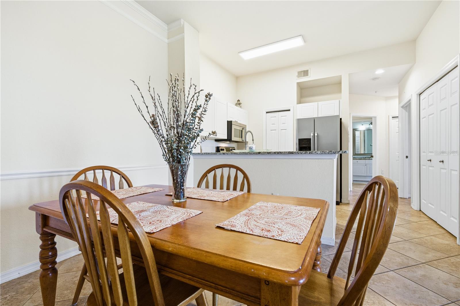 The unit has been freshly painted and meticulously cared for, reflecting true pride of ownership. Each bedroom offers a spacious walk-in closet, while the full-size washer and dryer are conveniently tucked into the pantry adjacent to the kitchen. Just outside the entry door, you’ll find additional private storage for added functionality.