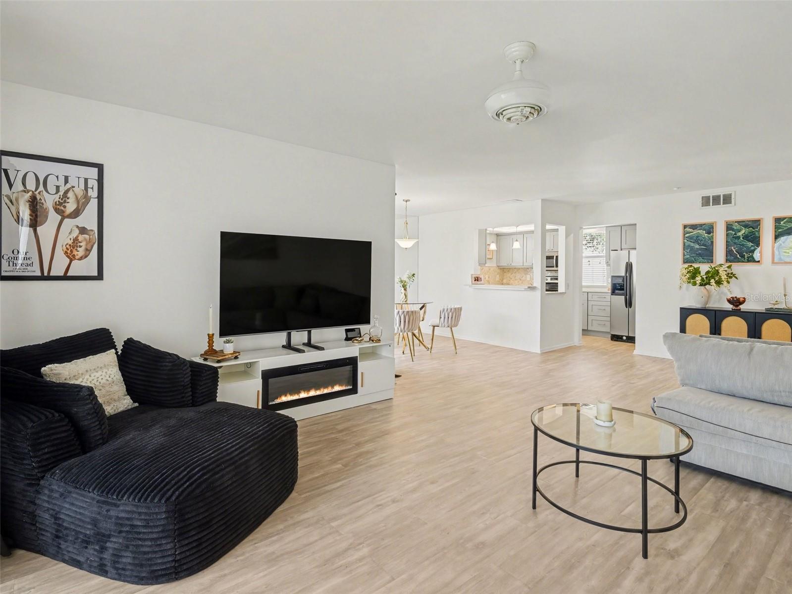 Designed with an open and airy layout, the home is filled with natural light from multiple exposures, enhancing the spacious living and dining areas. The updated kitchen features ample cabinetry, generous workspace, and large windows—perfect for both everyday living and entertaining.