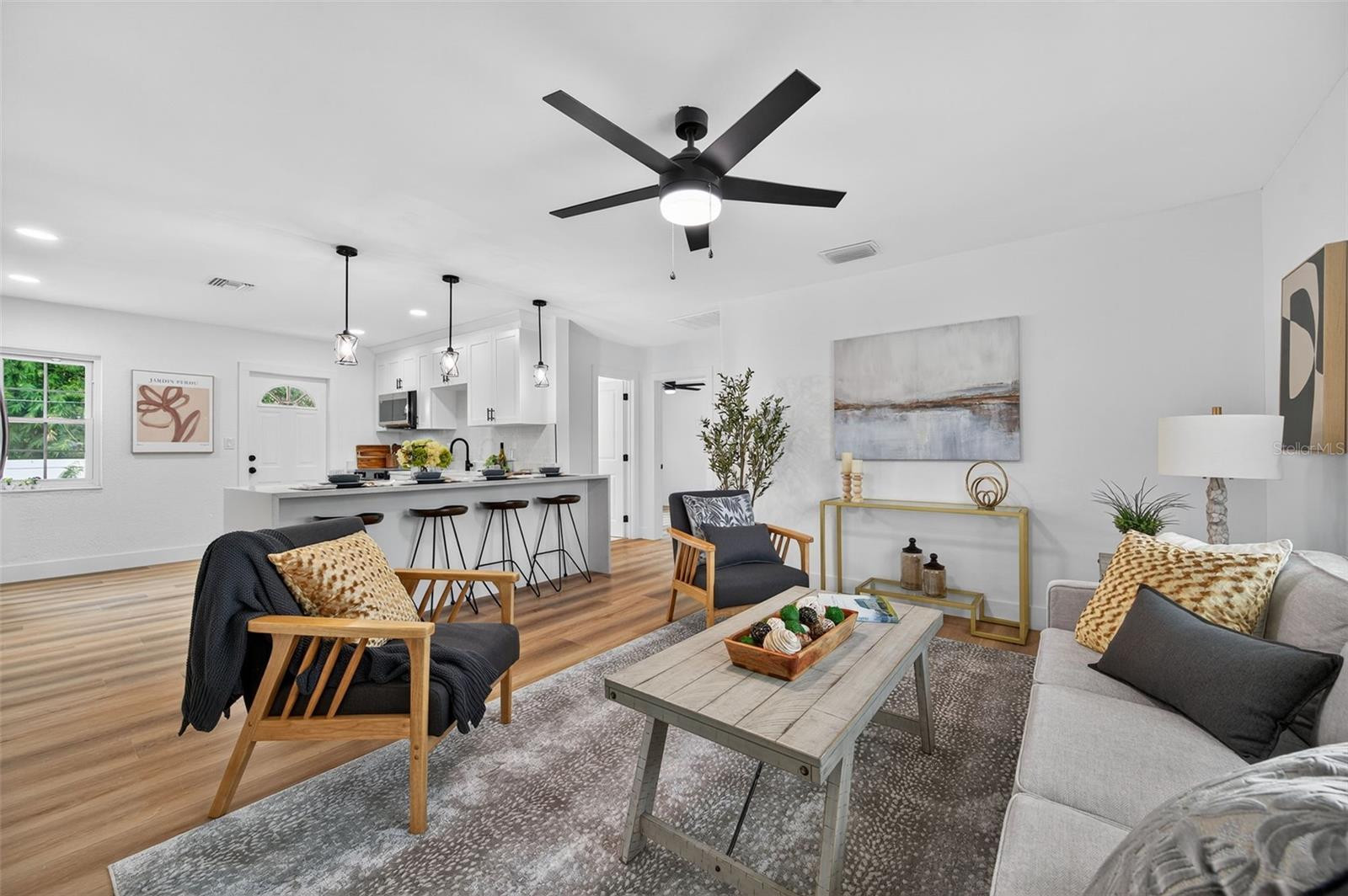 Located in one of St. Petersburg’s established neighborhoods, this move-in-ready 3-bedroom, 2-bath home sits on a desirable corner lot and offers complete modern updates. Inside, you’ll find an open-concept layout and a beautifully updated kitchen featuring waterfall-edge quartz countertops and stainless steel appliances. Both bathrooms have been fully renovated with modern finishes, and luxury vinyl plank flooring runs throughout for a clean, cohesive look. The home offers an abundance of natural light. Step outside to a spacious, fully vinyl-fenced backyard—perfect for entertaining, pets, or play—with mature landscaping and room for future additions. Conveniently located just minutes from shopping, dining, and the beaches. Located in Flood Zone X—no flood insurance required and no damage from last year's storms. Major updates include a new roof (2025), all-new ductwork, serviced HVAC (2025), and updated electrical and plumbing. - Virtual Tour: https://www.zillow.com/view-imx/81a1c24e-8b99-4eea-b64b-8a262d559884?setAttribution=mls&wl=true&initialViewType=pano&utm_source=dashboard