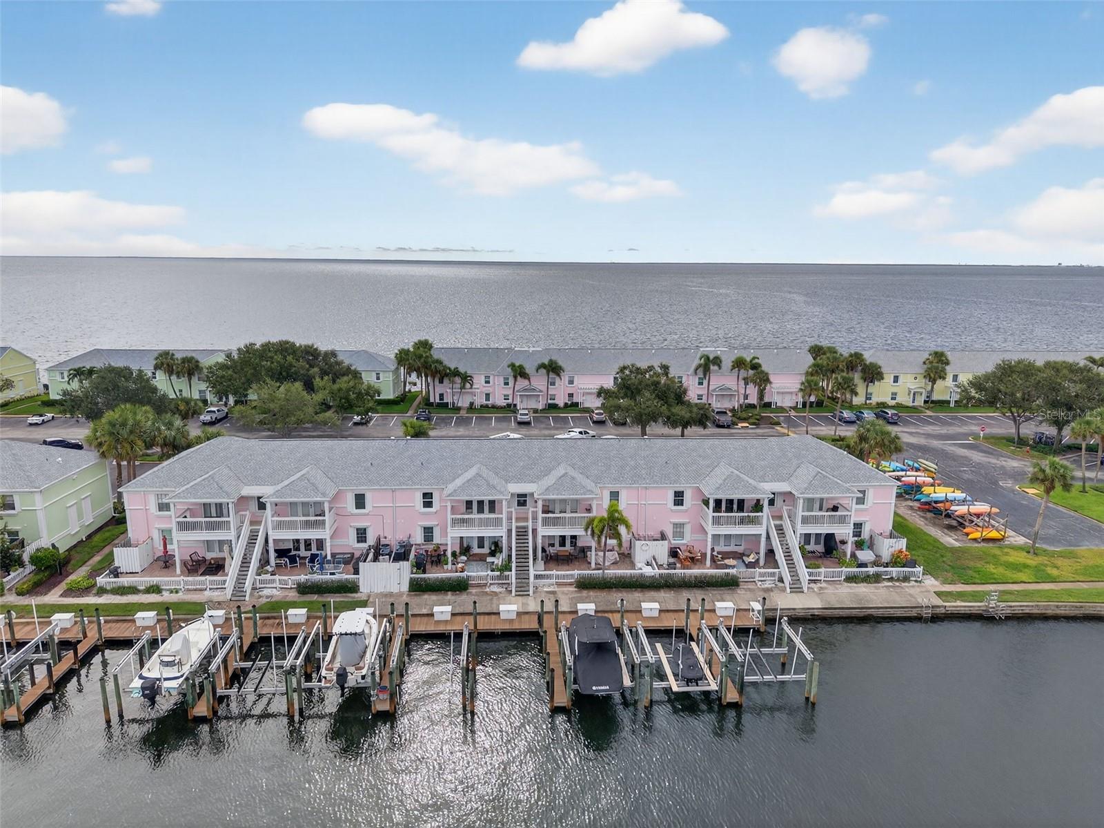Welcome to your coastal escape in an exclusive, gated waterfront community with 24-hour security. This light-filled, fully furnished 2 bedroom, 1 bath upstairs end unit offers panoramic canal views and direct access to Tampa Bay. Just steps from your back door is your deeded deep-water slip (fits boats up to 30ft) with electric, water, and lighting—perfect for a sailboat, jet ski, or waverunner.