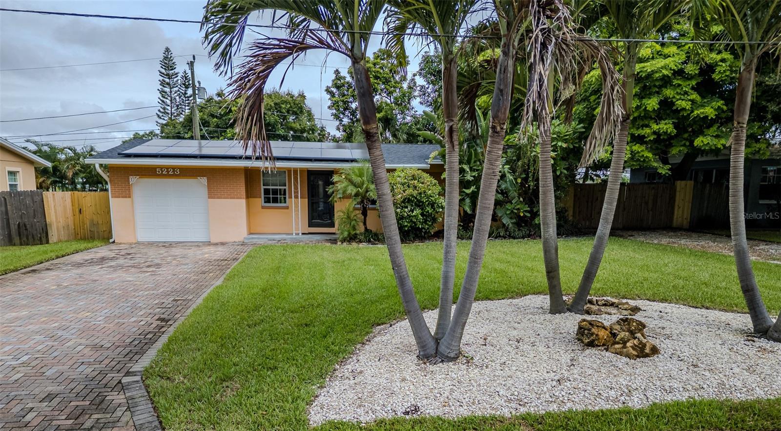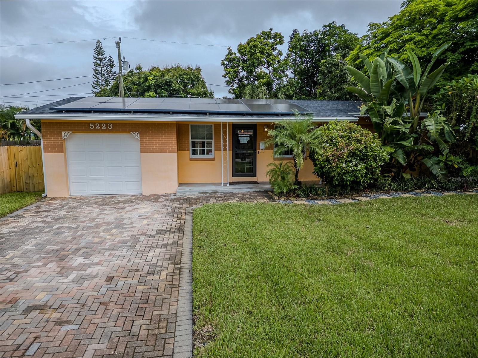 One or more photo(s) has been virtually staged. Welcome to this beautifully updated 3-bedroom, 1-bath home in the heart of St. Petersburg! Featuring a NEWER ROOF, SOLAR PANELS and TANKLESS WATER HEATER (2022) along with an A/C SYSTEM (2020), this home blends modern comfort with energy efficiency. Inside, the open concept living and kitchen area is ideal for today’s lifestyle, while the converted garage which is currently being used as the primary bedroom can also be configured as a bonus/living area to accommodate bigger furniture pieces. The kitchen shines with stainless steel appliances, quartz countertops, induction cooktop with double oven, shaker style cabinets, and a subway tile backsplash. Ceramic tile flooring flows through most of the home, while the primary bedroom features luxury vinyl. Wide baseboards and crown molding add a touch of elegance throughout. The fully remodeled bathroom boasts a new vanity, toilet, tile, and a shower/jetted tub combo for a spa-like experience. French doors open to a spacious fenced backyard, perfect for a pool, entertaining, or storage. A second driveway with double gates offers parking for an RV, boat, or other toys, while the well pump irrigation system keeps landscaping lush and low maintenance. As a bonus, a newer stackable washer, dryer, and deep freezer are included! With no HOA, no flood insurance required, and a non-evacuation zone location, this home is as practical as it is charming. All this just 15 minutes from the beaches and vibrant downtown St. Pete, close to schools, shopping, and restaurants. Schedule a tour of this beautiful home today!