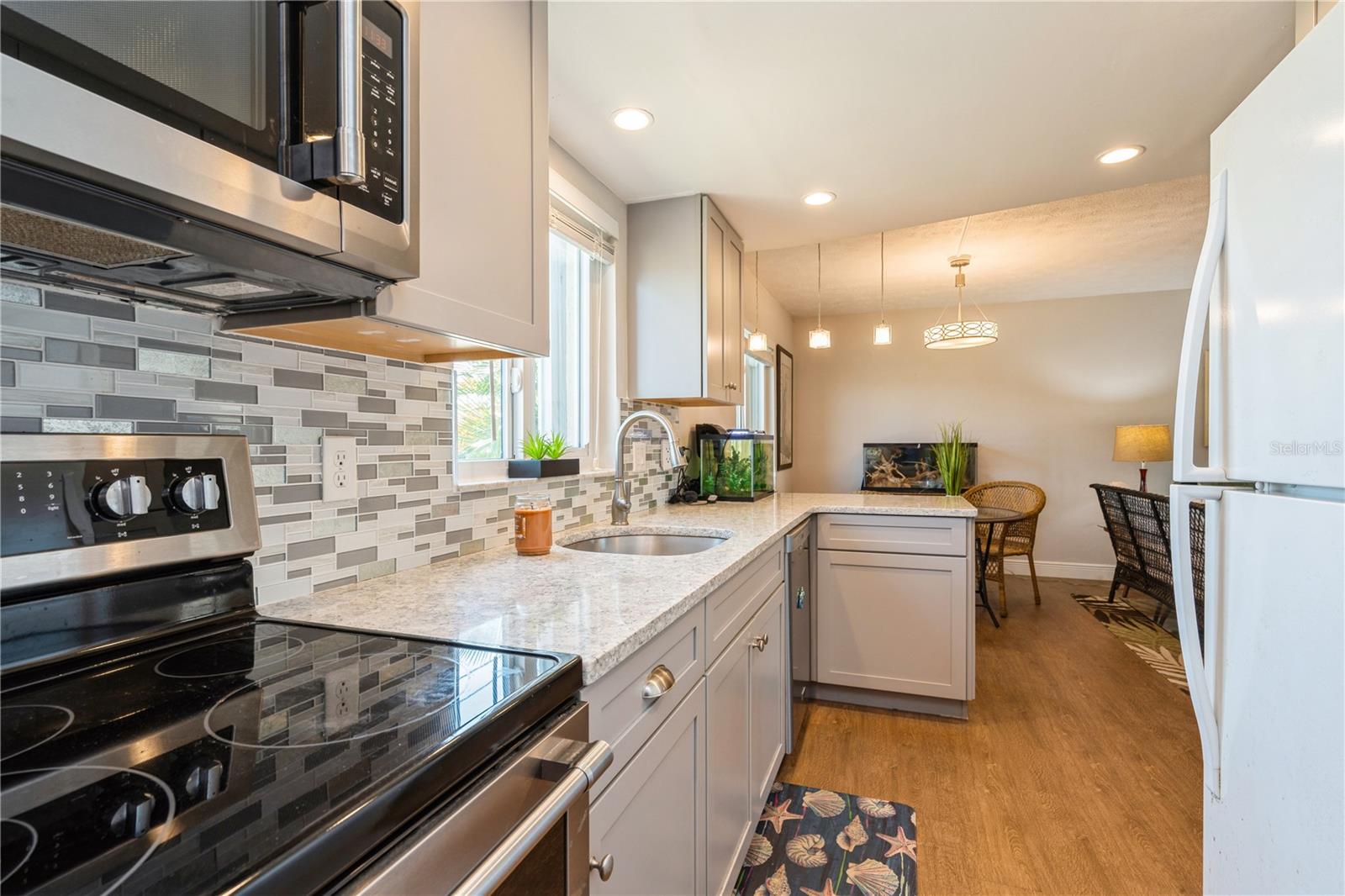 Updates include-BRAND NEW HVAC (2023), Roof (2023), newer kitchen with quartz counters, soft close cabinets and drawers, and LVP flooring. The windows are all HURRICANE PROOF, new bathroom fans, lights, ceiling fans in bedrooms, and more. You will enjoy the in unit front load washer and dryer, and all the natural light this unit provides. Both bedrooms have custom shelving, and the second bedroom has cedar lined closets and shelving! All that's left to do is come relax by the heated pool, and soak in the sunshine in this delightful tight knit community. Let's get you in your new home so you can enjoy the good life. - Virtual Tour: https://www.propertypanorama.com/instaview/stellar/TB8384489