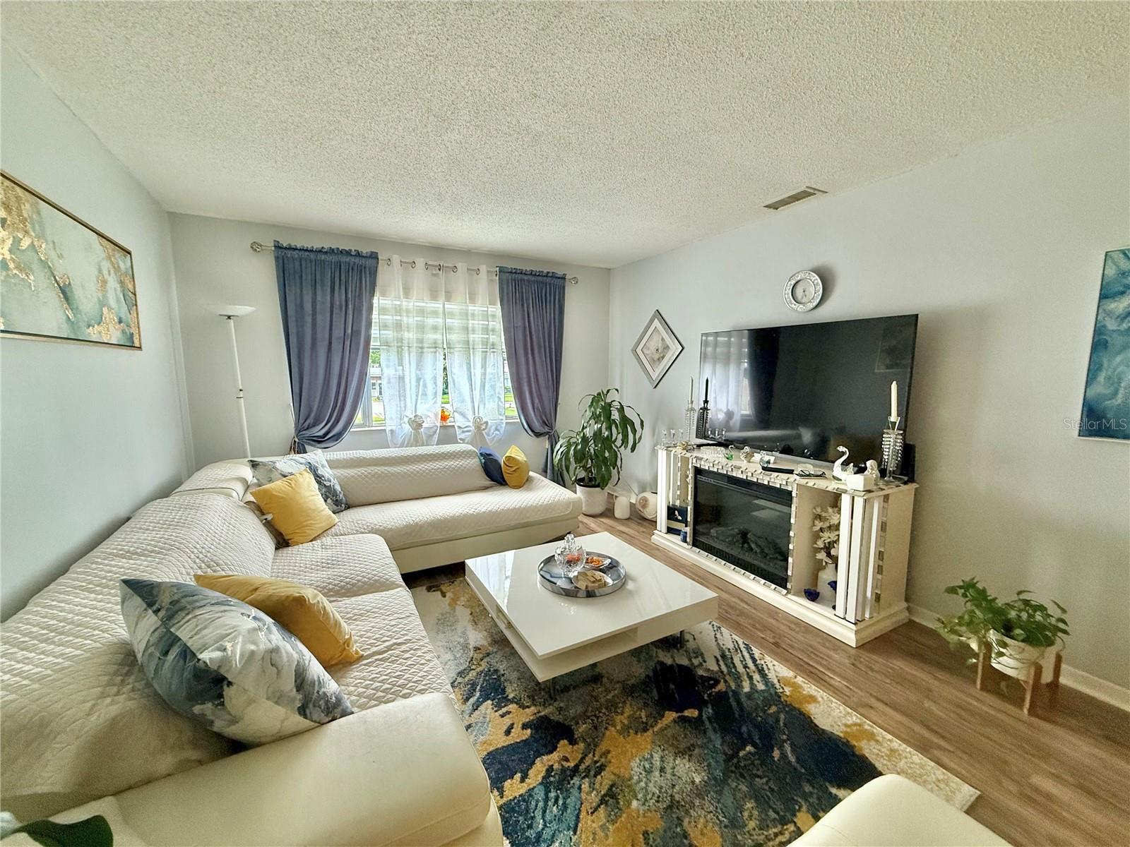 Discover this beautifully maintained 1-bedroom, 1-bathroom condo, nestled in the peaceful 55+ community of Paradise Shores. Step inside to a spacious, open-concept living and dining area featuring sleek laminate flooring and a large picture window that floods the space with natural light. The generously sized primary bedroom offers built-in window shutters for added style and privacy, and the adjacent bathroom includes an updated vanity for a modern touch.