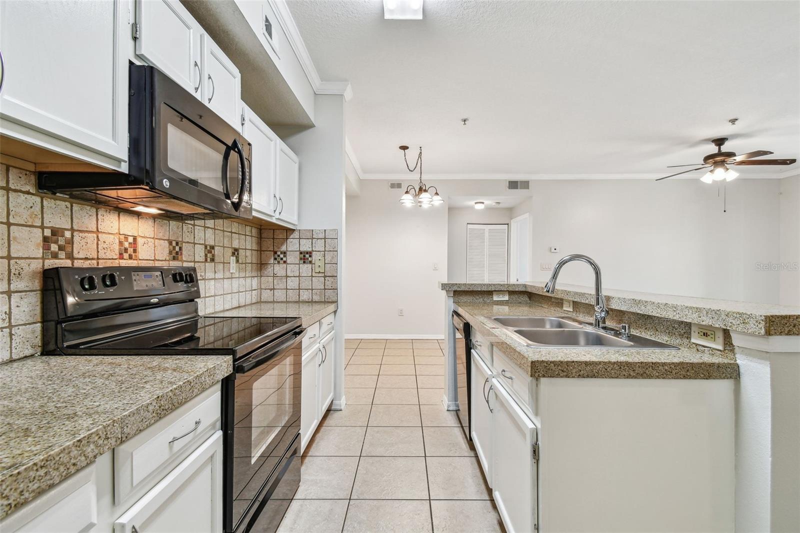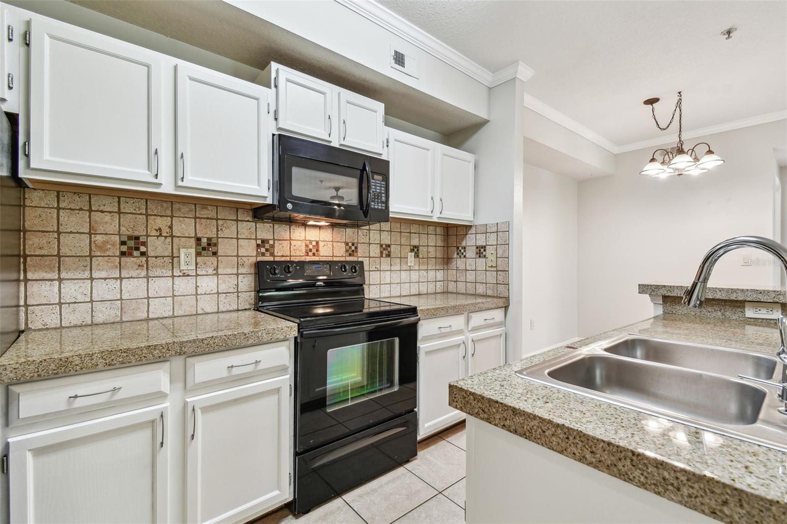 Amazing new price for this beautiful condo located in the desirable Pinnacle at Carrollwood complex. Don't miss your opportunity to be the proud new owner of this beautiful condo boasting of 2 large bedrooms, each with walk-in closets and two full baths. The kitchen features all black appliances including refrigerator, dishwasher, range and microwave giving a sleek, modern feel. A separate dining area with chandelier provides space for family and friends to dine comfortably. The nicely sized living room provides plenty of space for both entertaining or just relaxing. A sliding glass door leads to your own private balcony when you can sit back, relax and enjoy the views An outside closet on the balcony provides extra storage for outdoor cushions and/or items to be kept from the weather. The laundry area is right off the kitchen making doing the laundry a breeze. Stone countertops in the kitchen and both bathrooms not only look stunning but makes cleanups a breeze. Ceiling fans adorn both bedrooms as well as the living room helping to keep everyone cool and comfortable. Beautifully maintained complex with mature, manicured landscaping and beautiful ponds with fountain. Complex amenities include a beautiful community pool, a recreation building and an exercise/fitness center. Don't let this one pass you by...schedule your showing today!