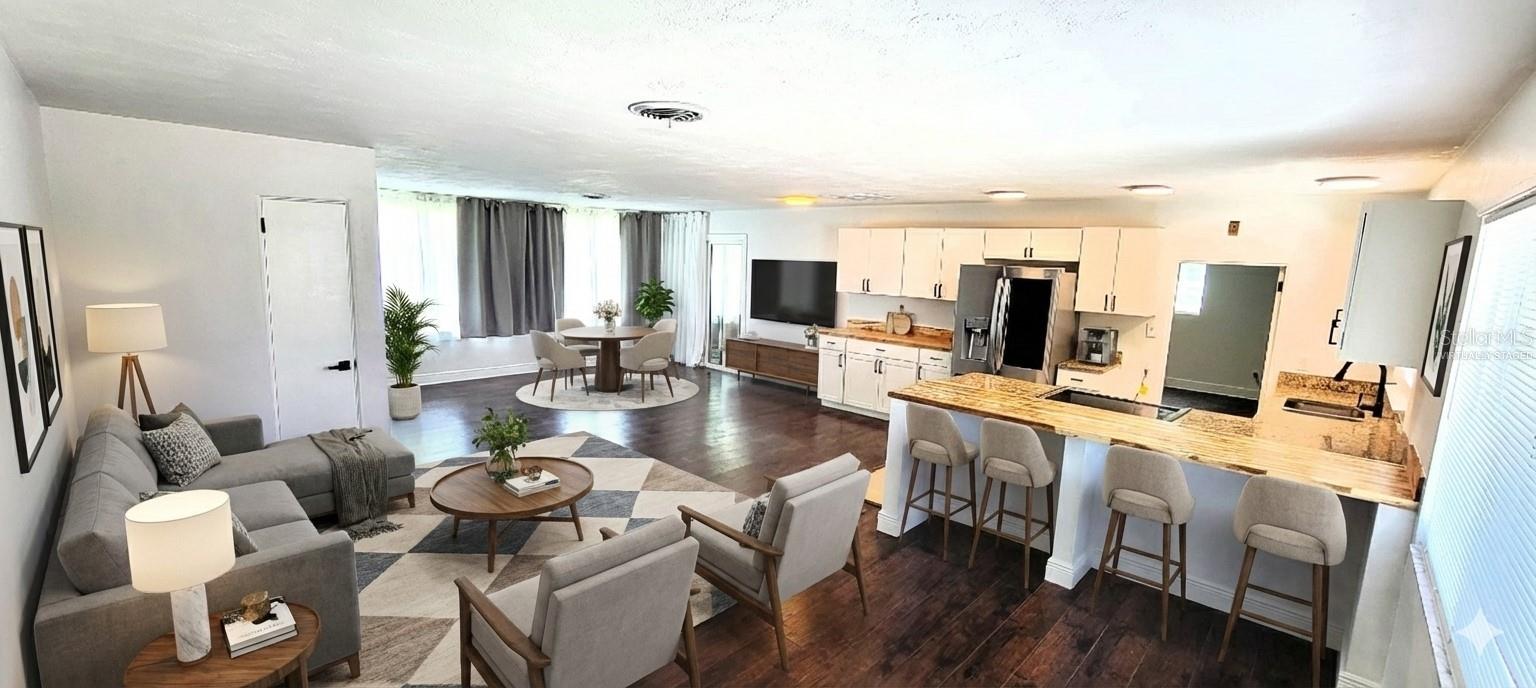 One or more photo(s) has been virtually staged. Welcome to 5755 43rd Street N St Petersburg, a move-in ready, 3 bedroom, 2 full bathroom cement block home that sits high and dry ( no flooding concerns with a 40 foot elevation) on a large (pool size - 12,663 SF) double size corner lot located in the FEMA X zone so flood insurance is not required by your lender. The lot is unique in that it is a corner lot that also had an alley running down the side so there are plenty of options to fence it off and lots of room to use your imagination for a pool or anything else. The main features of this home include NEW HURRICANE IMPACT RESISTANT WINDOWS & SLIDING GLASS DOOR (2023), NEWER ROOF (2021) and ATTIC BLOWN INSULATION (2023). The 1,468 square foot floor plan is very open and has a split bedroom design. The kitchen has newer cabinets, stainless steel appliances and a combination of granite and butcher block style counter tops. You will save a lot of money on your electric bill due to the built in (fully paid off!) solar panel system. The home is centrally located 15 minutes from downtown St Petersburg, 15 minutes from the beach and 20 minutes from the Tampa airport. This is an attractive, versatile home that can suit the needs of many home buyers. Make your appointment to see this home today!