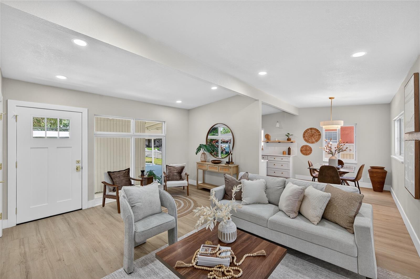 Priced to Sell. Experience the charm of this beautifully remodeled 3-bedroom, 2-bath home offering nearly 1,200 sq ft of stylish, comfortable living space. Move-in ready and meticulously updated, features include sleek stainless steel appliances (2025), HVAC (2025), elegant tile floors in the bathrooms, and stunning quartz countertops in both the kitchen and baths. Hurricane impact windows and doors (2025) provide both style and protection.