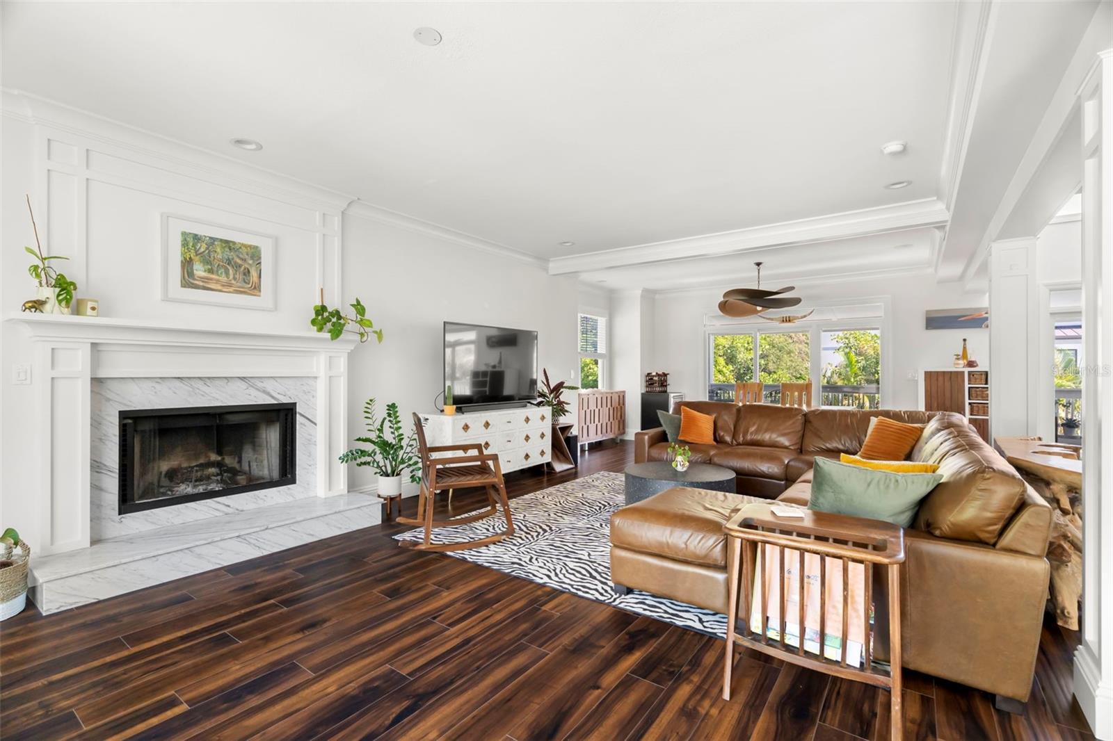 HUGE PRICE IMPROVEMENT! Pasadena Yacht & Country Club’s Hole-in-One! If you’re looking to elevate your lifestyle through community, amenities, and ensured safety for your family look no further than this Key West Style Home! Nestled within the exclusive royal palm-lined community of Kipps Colony Estates in the gated Pasadena Yacht & Country Club, this stunning home underwent a custom renovation in 2021, marrying modern elegance with comfortable living. Mature landscaping on all sides of this two-story elevated home creates the feeling of a private tropical treehouse, and the adjacent pond with active water fountains further elevates the ambiance while increasing privacy. Notably, this home experienced zero flood damage from Hurricanes Helene and Milton! As you step through the front door, you're greeted by a grand foyer with a two-story ceiling, adorned with skylights and expansive windows that flood the home with natural light. The custom woodwork in the entryway sets the tone, beautifully mirrored across to the woodwork and marble-faced fireplace in the living room. The newly renovated kitchen is a custom haven for culinary enthusiasts. Featuring soaring 20’ ceilings and large windows, it flows seamlessly into the dining room and connects to the second-story catwalk above. Luxurious Dolomite stone countertops and an expansive island offer both beauty and practical storage solutions. A custom cabinet reveals a spacious walk-in pantry. The open floor plan is elegant and versatile allowing the kitchen, dining, and living rooms to integrate smoothly, creating an inviting environment for entertaining. Adjacent to the kitchen are glass French doors leading to a flexible space. This suite includes a stunning bathroom with a double marble vanity, bathtub, shower, and vertical laundry, nestled amid custom cabinetry. Ascending the stairway, you'll discover the top floor master suite, embodying luxury with a vaulted ceiling, expansive windows, and a balcony with views of Boca Ciega Bay. The master bath is a serene retreat featuring a double marble vanity, marble floors, and walk-in closet. Soak in the massive tub with elegant marble detailing, or refresh in the separate marble shower. Two additional bedrooms on this level share a beautifully crafted bathroom, adorned with elegant cabinetry and a marble-inlaid tile shower/tub. One bedroom even boasts its own balcony. Step outside to the outdoor oasis, with lushly landscaped backyard, a private haven which boasts a pool and spa. Mature tropical foliage ensures privacy, making this retreat an entertainer’s dream. A spacious covered patio offers ample space for outdoor dining or relaxing by the pool. The ground floor features a bonus air conditioned room with sliding door access to the pool, multiple storage rooms, and both a double and single garage, accessed by two separate driveways. Enjoy the array of luxurious amenities this community offers, including a championship golf course, first-class restaurant, a marina, clubhouse with pool and gym, and courts for tennis and pickleball. Golf enthusiasts: you can skip the multi year waitlist at PYCC if you sign up within 30 days of closing on home! Don’t miss the chance to own a move-in ready home in one of the most desirable, family-friendly neighborhoods—where comfort, convenience, and community come together effortlessly.