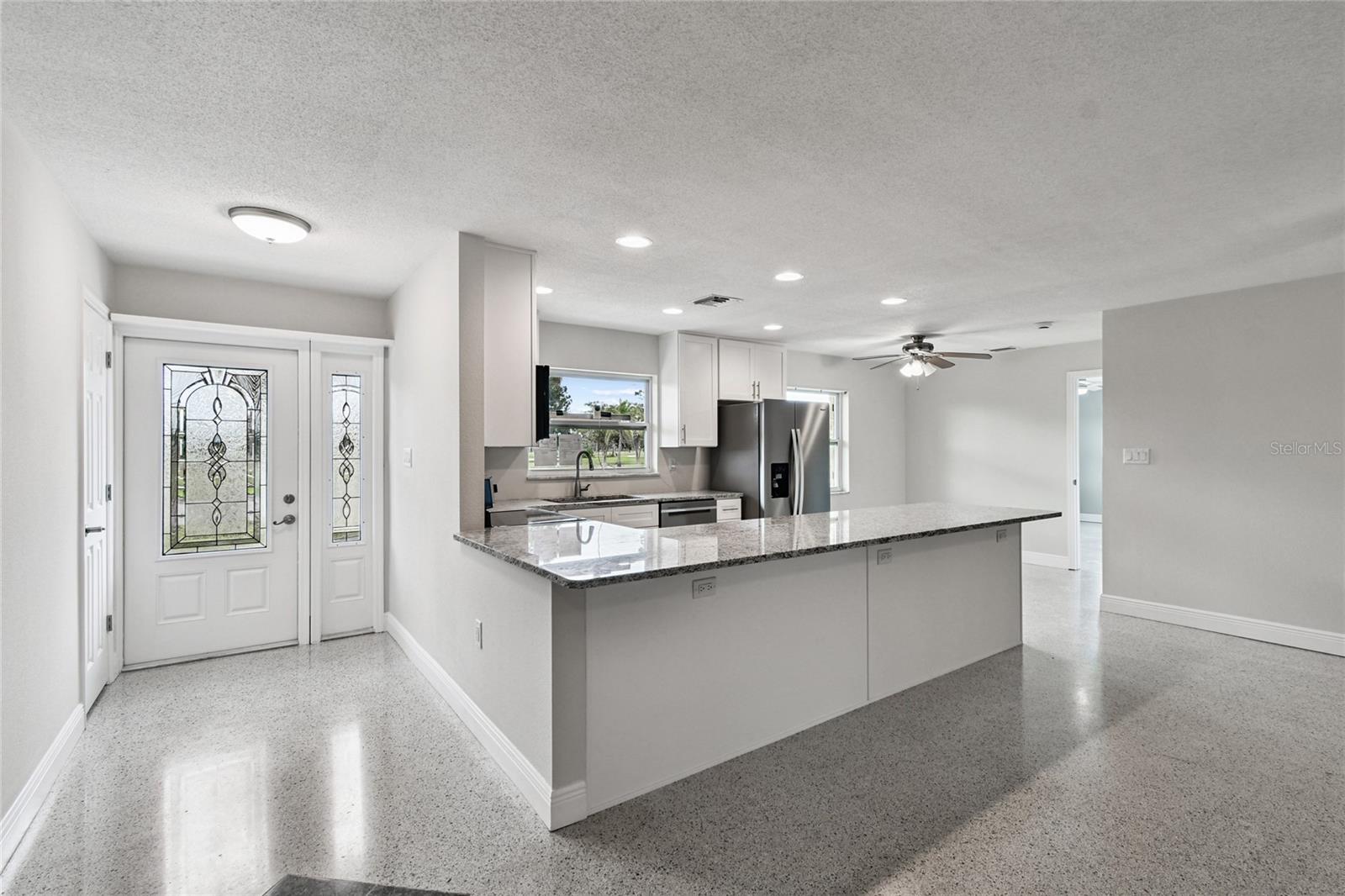 Welcome to your Florida dream home in the heart of Dunedin! This beautifully updated 3-bedroom, 2-bathroom residence offers a perfect blend of modern comfort and timeless charm.Step inside to discover gorgeous terrazzo flooring throughout and a light-filled, open layout. The fully renovated kitchen features an oversized island, brand-new stainless steel appliances, and sleek, modern finishes—ideal for cooking, gathering, and entertaining. Both bathrooms have been stylishly updated, and the spacious living areas provide plenty of room for relaxing or hosting guests.