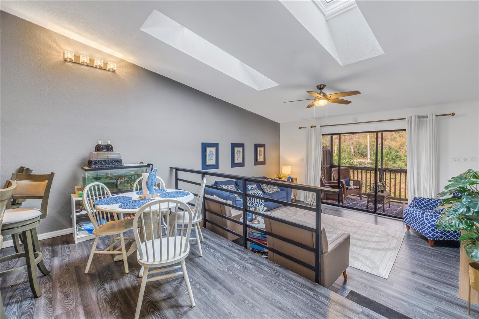 Move right into this updated townhouse style condo. Maintenance free living! Fees include heated pool, exterior maintenance, roof, water, sewer, trash, cable, internet,... This tri level home features a one car garage and a bonus/laundry room on the first level. The second level living area includes an updated kitchen with granite counters, open concept with dining and living spaces, vaulted ceilings, skylights, and an outdoor patio. Laminate flooring throughout. The upper level features 2 bedrooms and a 1.5 bath combo, plus a balcony off the primary bedroom. Awesome location! Just across from Helen Howarth Community Park with a dog park, baseball fields, picnic pavilions, playground, walking and horse trails...Short commute to Tampa, Clearwater, St. Pete... About 20 mins to Tampa Intentional. About 20 mins to the gorgeous Gulf beaches. 25 mins MOL to Downtown St Pete. Buyer to verify all measurements and condo rules.