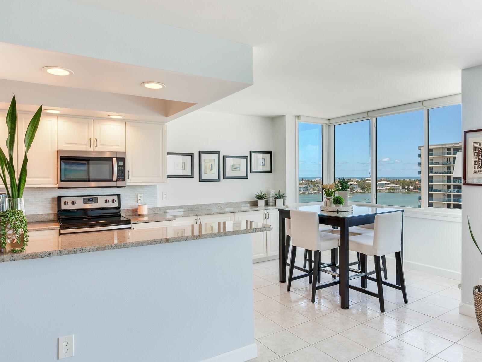 Welcome to your dream home in the sky, a fully renovated and exquisitely furnished 7th-floor waterfront condo in the highly desirable Diamond Isle community on Island Estates, Clearwater Beach. This spacious 2-bedroom, 2-bath residence offers 1,350 square feet of beautifully designed living space with panoramic water views of the Intracoastal Waterway and breathtaking seasonal sunsets over Clearwater Harbor.