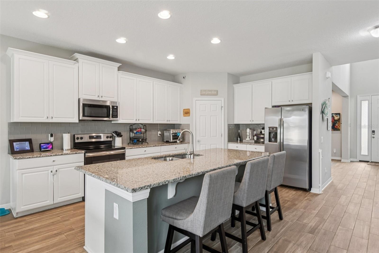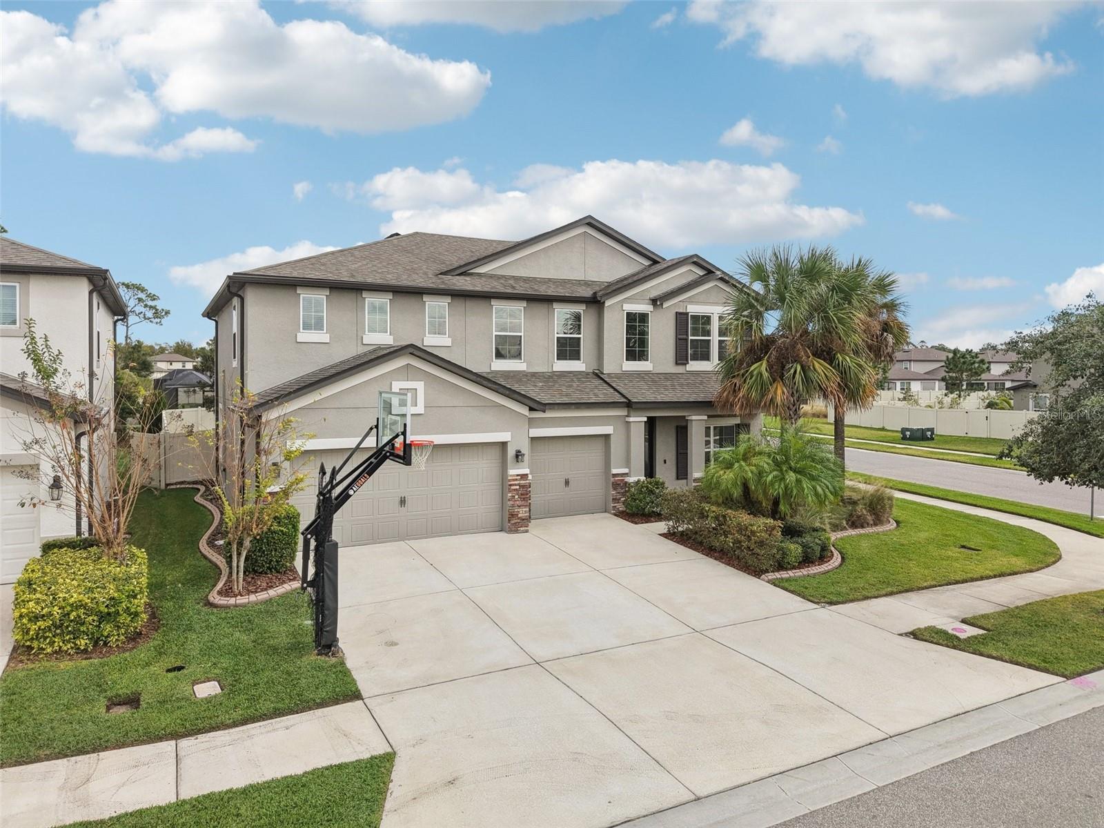 Step into a beautifully maintained home where space and scale take center stage! Spanning 3,292 square feet, this expansive residence features 4 bedrooms, 2.5 baths, and a versatile layout designed for both intimate daily living and grand-scale entertaining. The thoughtfully crafted floor plan includes a loft upstairs, a generous bonus room downstairs, and an additional flexible downstairs space easily converted into a 5th bedroom. The sense of openness begins downstairs, where wood-look tile floors flow seamlessly through sun-drenched gathering spaces. This level features 2 versatile flex rooms—ideal for a home office, formal dining, or crafting - with an option for a private guest bedroom. The impressive proportions extend outdoors to the large corner lot. Slide out to your covered back patio, the perfect vantage point to overlook an unusually spacious and private backyard, fully enclosed by low-maintenance vinyl fencing. The theme of massive living continues upstairs with a bonus loft, perfect for a media room or family retreat. The upper level is completed by 3 additional bedrooms and a luxurious primary suite. Situated in the gated community of Wesbridge, you're just a short walk (roughly 0.2 miles) from A-rated Wesley Chapel schools. Enjoy community amenities like a pool, dog park, and playground, all while enjoying the rare elbow room of your oversized lot. Spacious, welcoming, and ready for its next chapter!