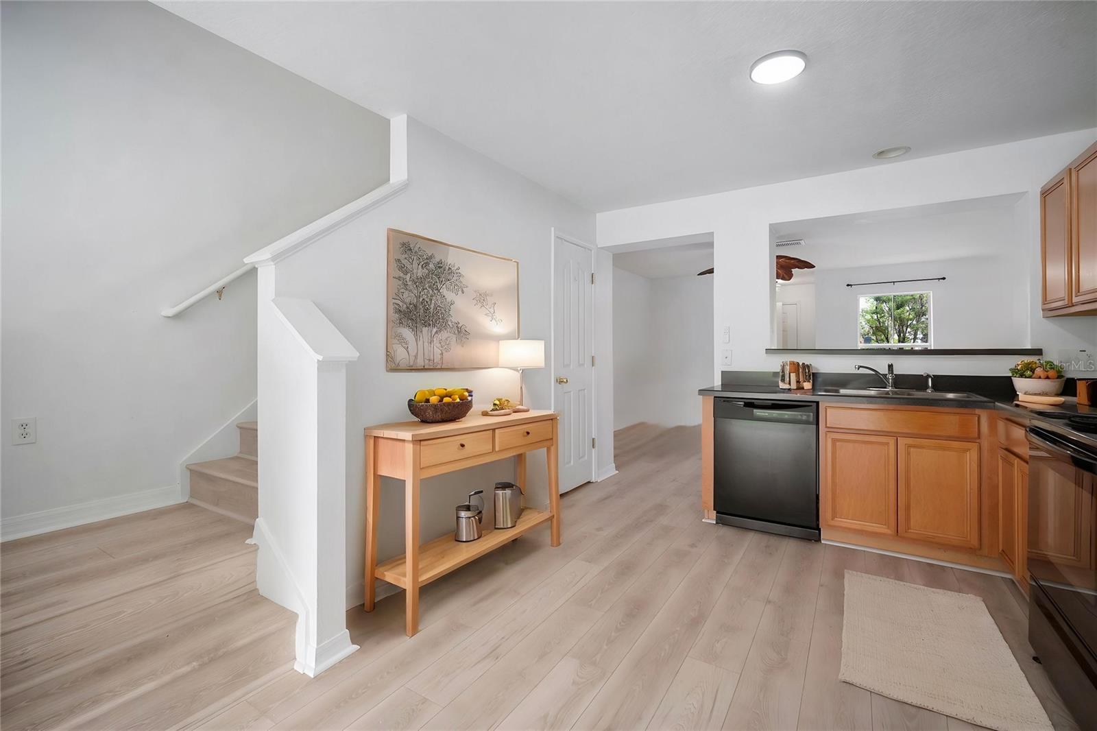 Inside, the open-concept layout features luxury vinyl plank flooring throughout, creating a cohesive and modern aesthetic. The spacious living and family rooms provide ample space for entertaining, while the kitchen offers generous cabinet storage and a convenient pantry. Upstairs, two private en-suite bedrooms boast ample closet space, and the laundry room adds everyday convenience.