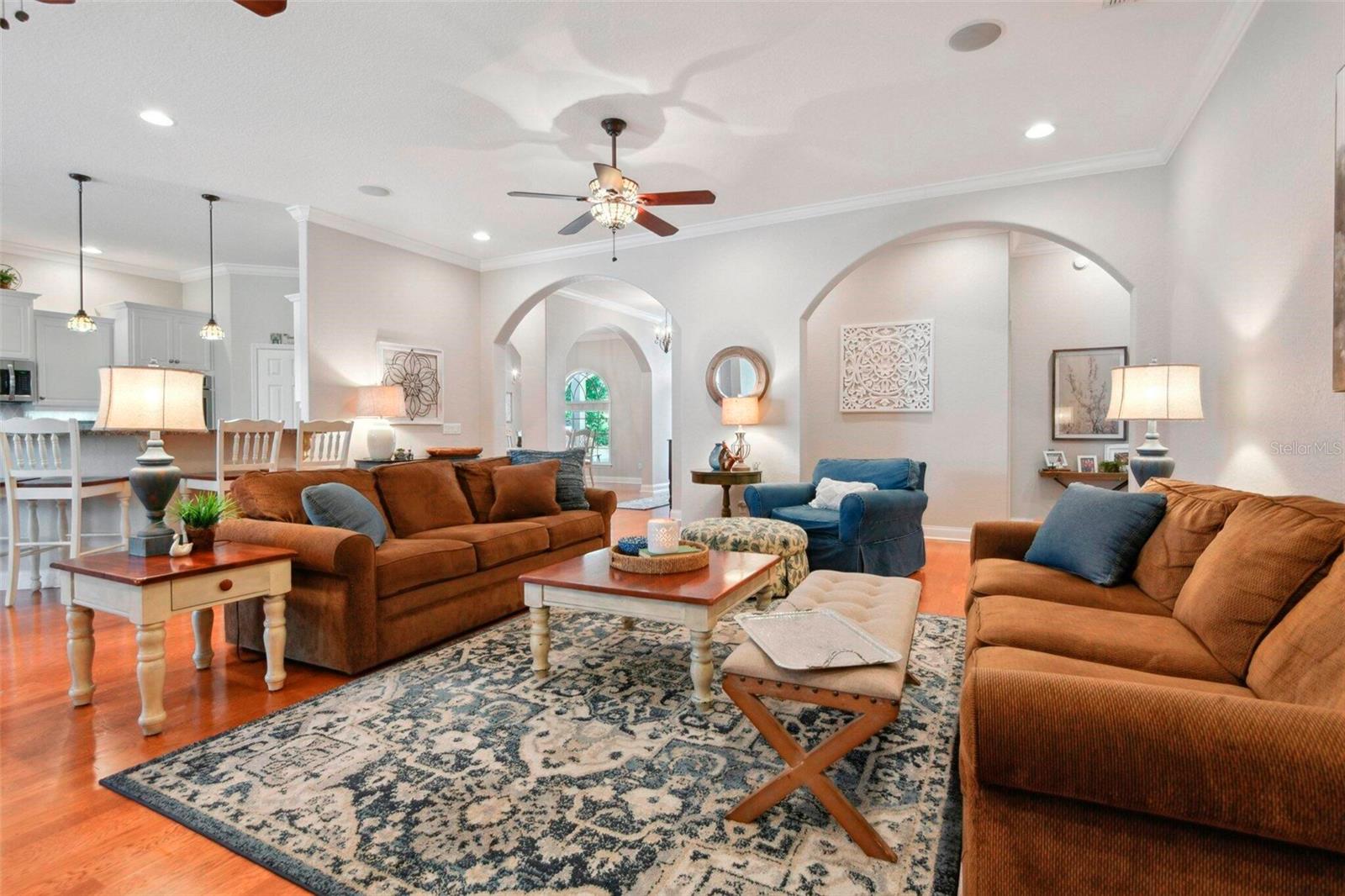 - Interior Features: Ceiling Fans(s), Crown Molding, Eat-in Kitchen, High Ceilings, In Wall Pest System, Primary Bedroom Main Floor, Split Bedroom, Thermostat, Walk-In Closet(s)