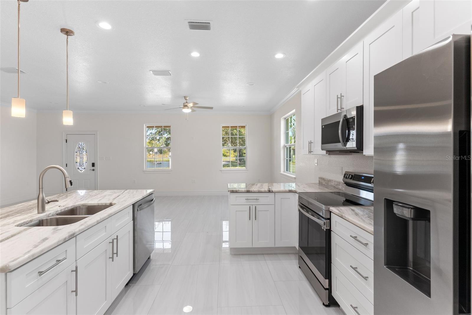 - Interior Features: Ceiling Fans(s), Crown Molding, Open Floorplan, Stone Counters, Thermostat, Walk-In Closet(s)