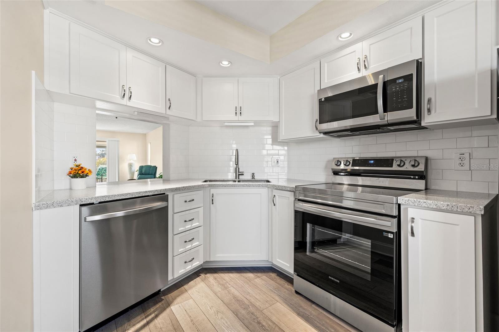 Renovated 2-Bed/2-Bath End Unit in Coveted Cordova Greens!Enjoy Florida living at its finest in this spacious, move-in-ready condo featuring a screened patio with serene views of the heated community pool. This end unit has been thoughtfully updated with brand new flooring, fresh interior paint, and a stunning kitchen remodel that includes all-new cabinetry, appliances, sink, faucet, garbage disposal, and NEW HVAC system. The in-unit laundry, conveniently located on the patio, adds to the home's easy living appeal. Set in a well-maintained, elevator-access building, Cordova Greens offers a walkable, bike-friendly community with nearby shopping, dining, and medical facilities. Golf and tennis enthusiasts will love the proximity to Bardmoor Golf & Tennis Club, and the award-winning Gulf beaches are less than 10 miles away. With no age restrictions and a new pet-friendly policy allowing dogs up to 30 lbs, this condo combines comfort, style, and location—making it the perfect place to call home or your next seasonal retreat.