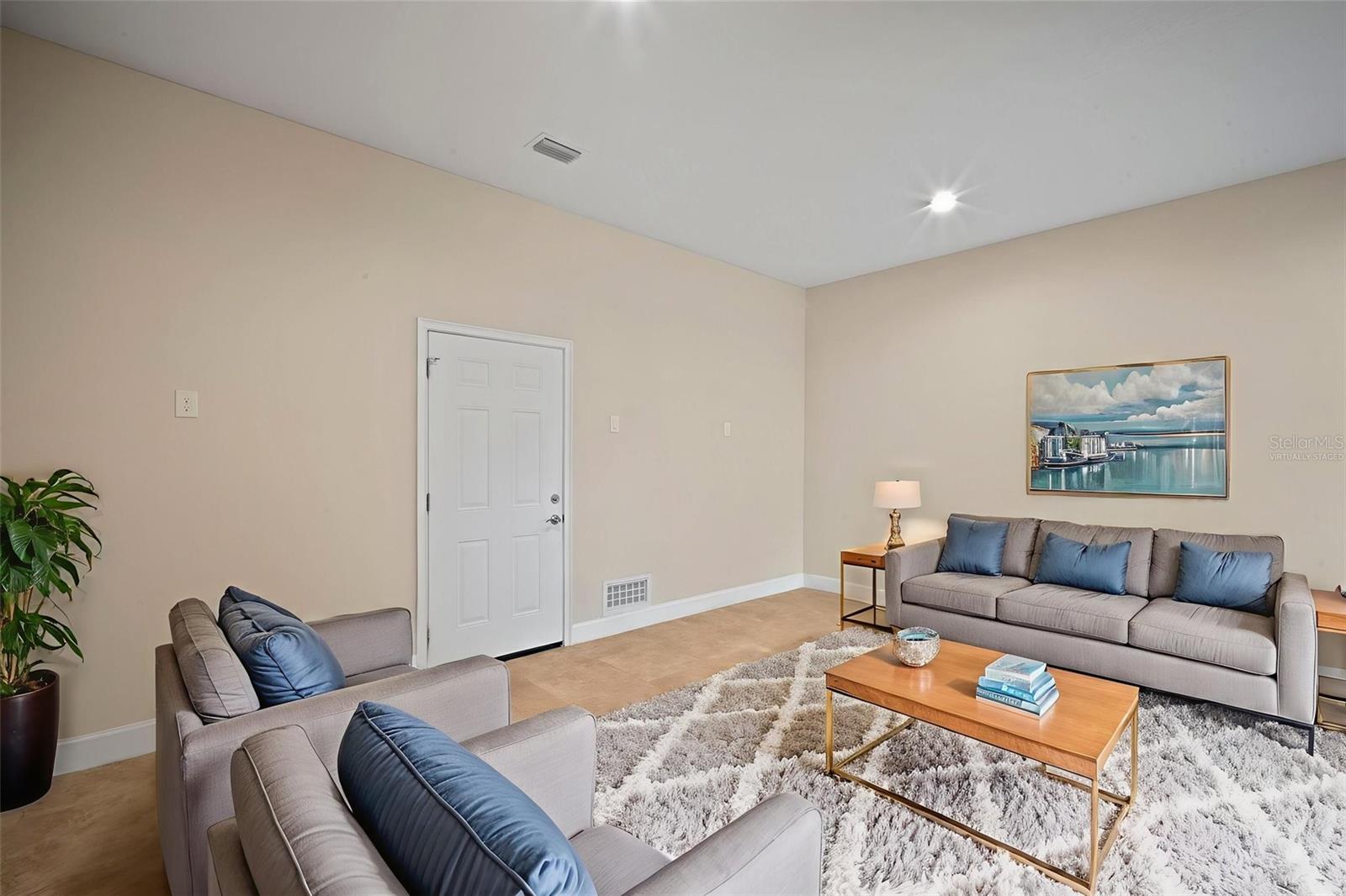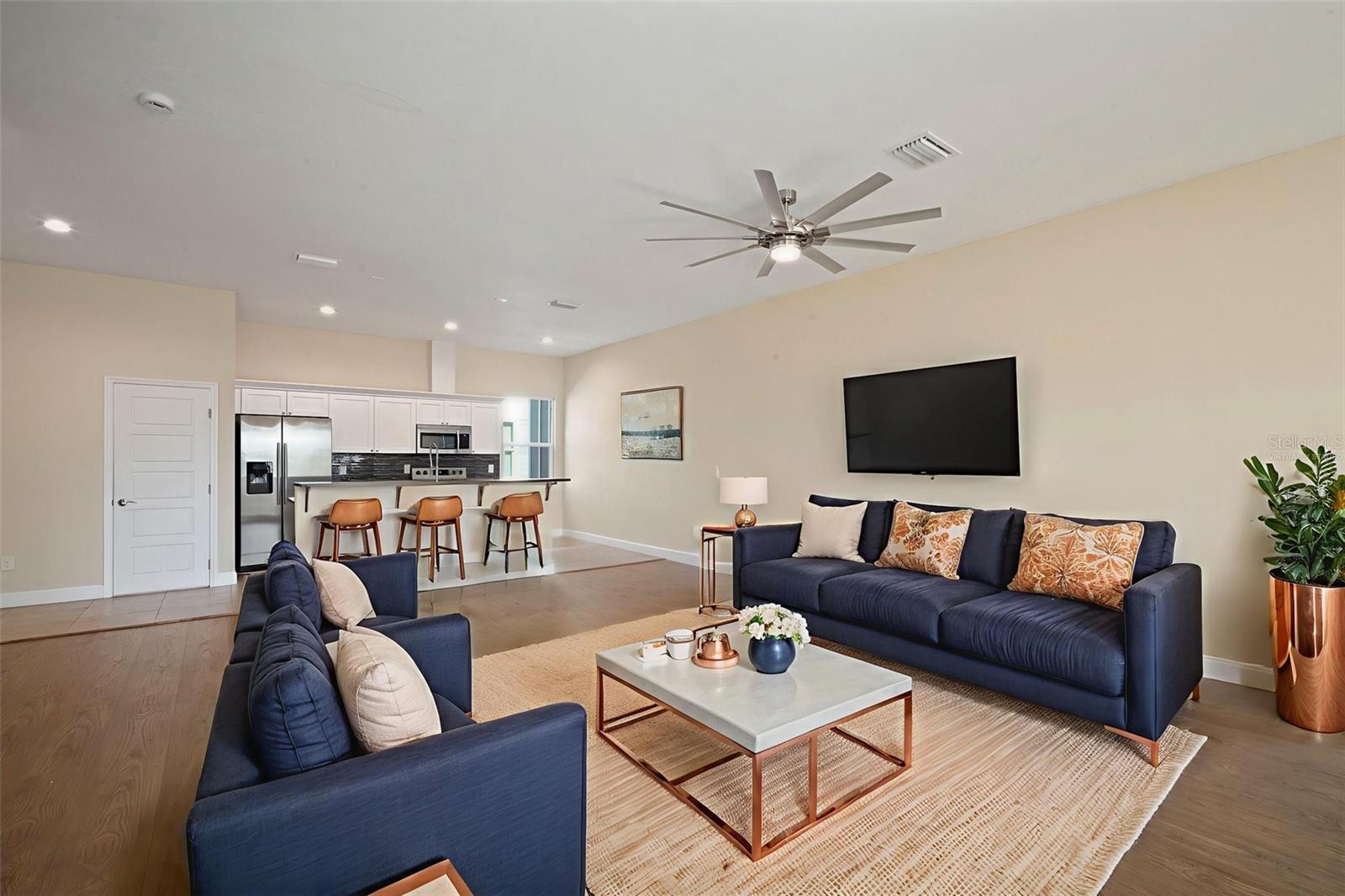 Nestled in the desirable Palmetto Beach enclave mere minutes from SPARKMAN WHARF, Channelside, and historic Ybor City, this meticulously maintained, 2016-built townhome spans approximately 2,200 sqft across three stories. Boasting 3 bedrooms and 2.5 baths, the layout features a versatile first-floor bonus room ideal for an office, gym, or media space, followed by a stylish open-concept second floor combining living, dining, and kitchen areas with stainless steel appliances, butcher block countertops, a farmhouse sink, and access to a private balcony. The expansive primary suite offers a walk-in closet and luxurious bath with dual vanity, Jacuzzi tub, and separate shower, while two additional upstairs bedrooms ensure privacy. Practical comforts include laminate and tile flooring, a laundry closet, and an oversized attached two-car garage. All this is available with a low $55 monthly HOA, combining city-center convenience with peaceful residential charm.