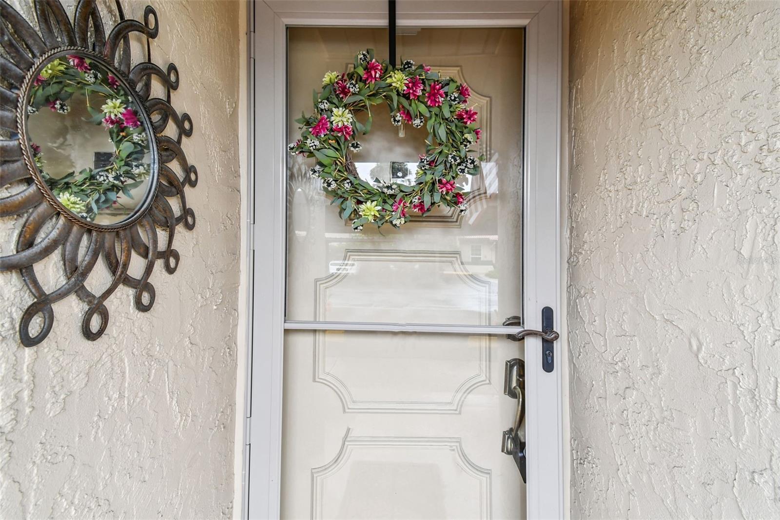 An enclosed and tiled patio at the back of the home expands your living space and offers peaceful views of the community greenbelt—an ideal spot to enjoy Florida’s weather, complete with wiring for a wall-mounted TV. Whether you’re sipping morning coffee or relaxing in the evening, this outdoor oasis is ready for all seasons.