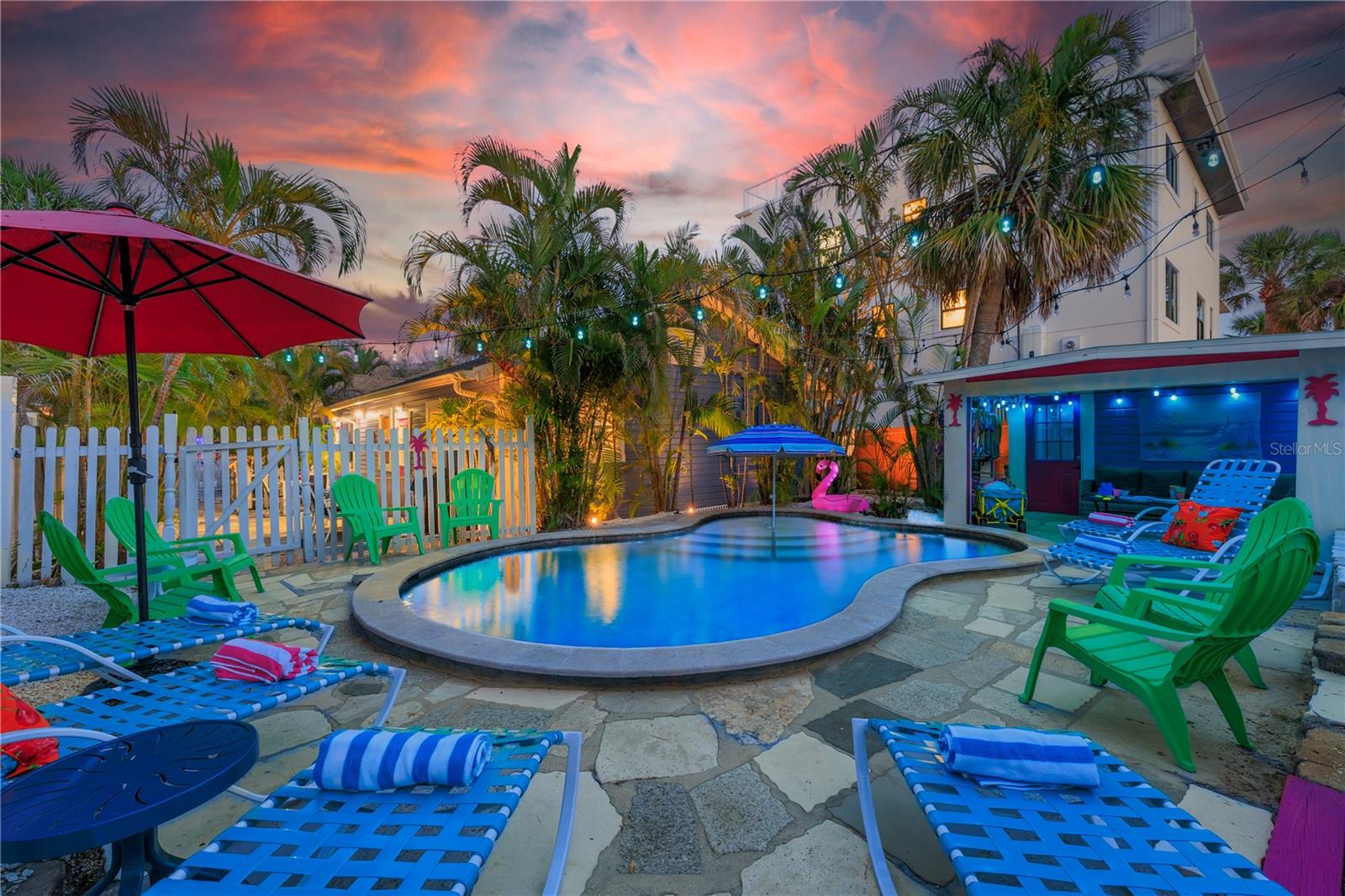Welcome to 722 Gulf Blvd. A Rare Beachside Gem with Endless Flexibility & Turnkey Appeal. Nestled on the coveted west side of Gulf Boulevard in one of Florida's most adored beach towns of Indian Rocks Beach, just steps from the powdery white sand and the shimmering Gulf waters, this fully renovated, income-generating duplex offers an incredible opportunity to own your own piece of Old Florida, complete with modern touches and unbeatable versatility. Located in the Commercial Tourism (CT) district with short-term rental rights that can never be revoked, owners have the flexibility to operate as a high-performing vacation rental, a multi-unit retreat, or convert to a stunning, single family beach home. Step inside and your eyes are instantly drawn to the gorgeous coffered ceilings throughout as you make your way through the well thought out floor plan. Currently configured as a spacious 3 bed/2 bath unit with interior laundry and a charming 1 bed/1 bath suite, both complete with full size, newly renovated kitchens. The units are joined by a fire-rated door, offering flexibility to rent separately or as one 4 bedroom/3 bath retreat. Originally built in 1925, this amazing property has been completely reimagined. Recent updates in 2025 include all new electrical throughout, new LVP flooring and subfloor, new water heater, new stainless steel appliances, beautiful custom cabinetry, gorgeous granite countertops, new insulation in walls and attic, new interior doors & trim, two new HVAC systems (2024), new bathroom vanities, and gorgeous furnishings throughout... you name it, it's likely new - AND all completed with pride of ownership and proper permitting! Outside, your guests and family can unwind poolside or float your worries away in the stunning, heated in ground pool (2020). Relax in the shade under the cabana, complete with a half pool bath for convenience (and additional storage and W/D hookups), or grill and dine al fresco on either of the front porches. This property has AMAZING reviews and repeat guests that return year after year for the unbeatable location, walkability to IRB’s best dining and entertainment, and the nostalgic beach town vibe that only this stretch of Gulf Blvd can offer. Whether you're looking to expand your portfolio, create a legacy beach home, looking for the perfect 1031 exchange or just want to enjoy a slice of Old Florida charm with modern flair, this property checks every box: prime location, premium upgrades, protected rental rights, and serious income potential. This property was recently re-listed on Airbnb and already has over $60k of bookings in June - August alone, with estimated gross earning potential around $250,000 annually! Don’t miss your chance to own one of Indian Rocks Beach’s most desirable and dynamic offerings. Call and make your appointment to view this beauty today!