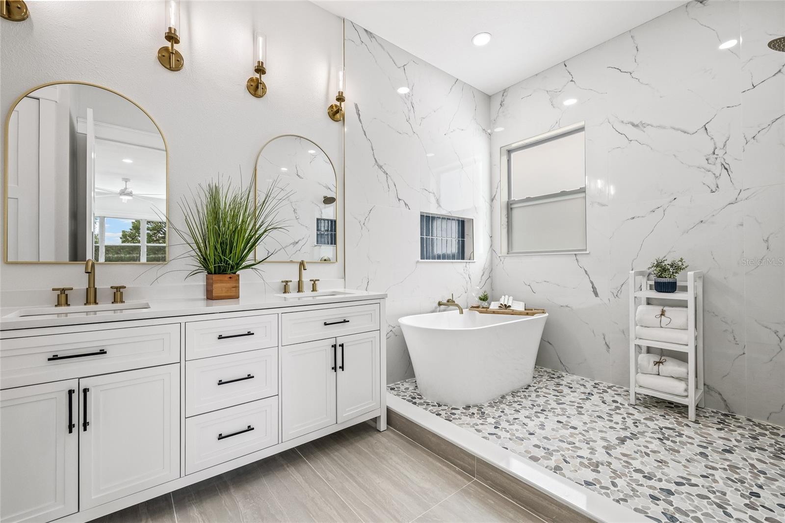 Brand-New Construction in Northeast St. Petersburg by Coastline Homes! Situated on a quiet street in the Greater Allendale area, this stunning new-construction home offers refined living in one of St. Petersburg’s most sought-after areas. Fully completed and move-in ready, this thoughtfully designed residence features 5 bedrooms + loft, 4 bathrooms, and an attached 2-car garage with alley access. Inside, you'll find 10’ ceilings, rich engineered hardwood flooring, 8’ interior doors, and high-end designer finishes throughout. Elegant trim work, oversized baseboards, and cased windows add to the home’s timeless charm. The custom kitchen is a chef’s dream with abundant cabinetry, wine fridge, ice maker, butler's pantry and stylish finishes, seamlessly connecting the dining & family room spaces. The main level bedroom with en-suite bathroom offers flexibility to serve as a playroom, home office, or guest suite, while the great room provides a comfortable space to relax or entertain. The Master Suite is a private retreat with a luxurious en-suite bathroom featuring an oversized double-sink vanity and a spa-like walk-in shower with soaking tub. Step outside to enjoy the covered front and rear porches and a fully fenced backyard with white vinyl fencing—perfectly private and offering ample space to add a future pool. Whether you're entertaining guests or enjoying a quiet evening at home, this outdoor space is ready to grow with your vision. Located just minutes from vibrant Downtown St. Pete, Gulf beaches, parks, and top-rated schools, this home blends luxury, comfort, and convenience in a location you’ll love. Don’t miss your chance to own this exceptional new home—schedule your private tour today!