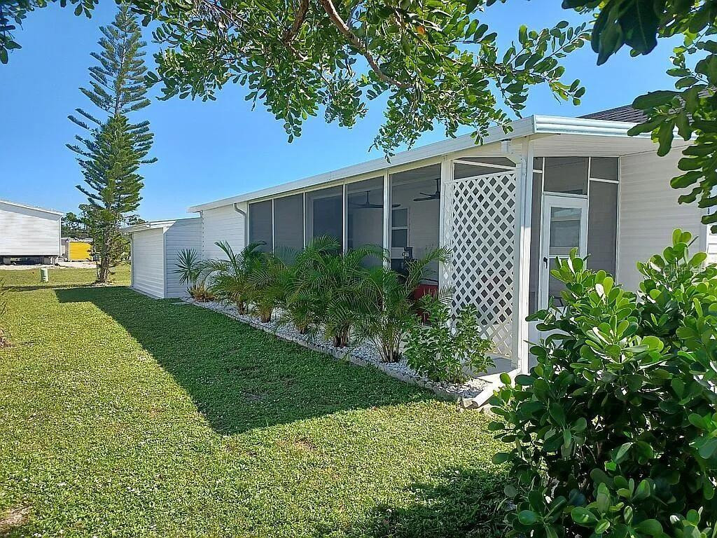 Paradise awaits! This 1Bd/Ba 624 SF mobile home is in the highly desirable waterfront community -VHL where you OWN the land. No land lease and no age restrictions! 2 pools (one heated), BBQ area, rec hall, craft rm, fitness center, laundry, tennis, pickleball, shuffleboard, access to 2 storage lots, boats slips, private ramp, lawn maintenance and more! This home has been completely updated. New custom kitchen with quartz tops, soft close drawers, open shelving, shiplap backsplash and a large bar area to eat comfortably. Spacious living rm with furniture to convey. New LVP flooring throughout. The bathroom has a new walk in tiled shower, vanity, tankless water heater and lighted mirror. The master bedroom has a King size bed that will remain and a walk in closet for all your storage needs. The exterior has lush landscaping, large lanai with epoxy flooring, patio furniture to remain, laundry rm and a huge storage closet. Minutes to the most beautiful beaches, great fishing, golfing, restaurants and shopping.