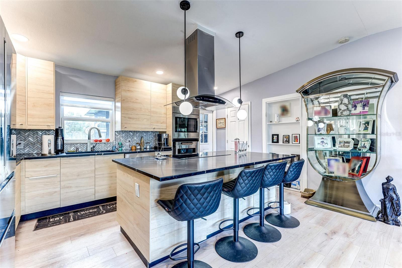 The heart of the home is a spacious 12' x 16' kitchen equipped with top-of-the-line Bosch appliances. You’ll find 16 custom cabinets providing abundant storage for all your culinary needs, along with a striking 7-foot island that includes an induction cooktop— for both meal prep and casual gatherings with family and friends.