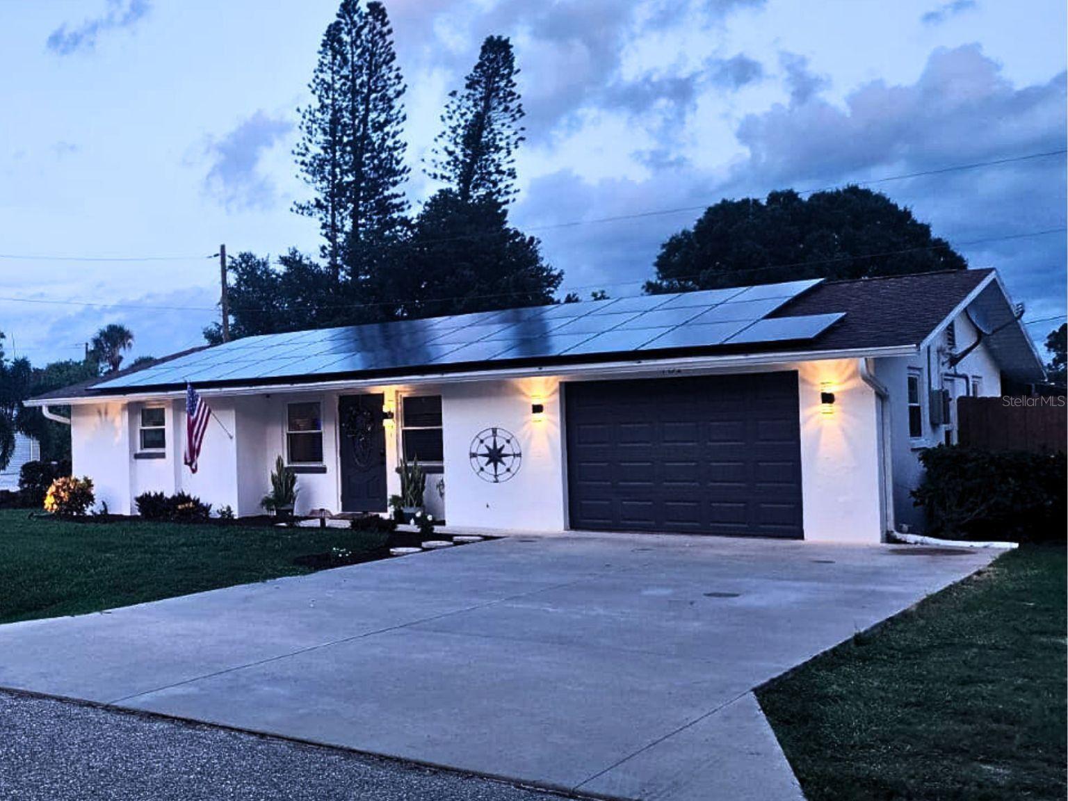 Welcome to this charming oasis in the heart of Venice, FL! This stunning two-bedroom, two-bathroom home is nestled on a spacious .28-acre (12,000sqft) desirable corner lot, offering ample space and privacy. Upon entering, you will be greeted with the bright, spacious living room leading to the dining area. A lovely primary bedroom awaits with a beautifully renovated en-suite bathroom. The second bedroom at the front of the home makes for a great guest room. As you enter the dining room, you'll feel the kitchen's warmth, which is the heart of the home. The Indoor laundry room, separate from the main garage, features a pantry for storage. There is also a second bathroom with a shower. The Florida room is full of natural lighting, overlooking the gorgeous swimming pool and spa. This room can be used as a den or a fun games room, Step outside to enjoy your private paradise, great for relaxing, and entertaining guests with the outdoor kitchen patio. This home is located in a No Flood Zone Area with a Higher Elevation of 27ft Above Sea Level, very desirable for anyone looking to move to Venice FL. You can also say goodbye to high utility bills with the 34 solar panels (Fully Paid Off) installed on the roof. There is RV parking or room to store a boat by the side of the garage. For an optional fee, This home has access to a private beach ferry and boat ramp through the South Venice Civic Association. The ferry takes passengers to a secluded area of Venice Beach that's not accessible by land vehicle. With its prime location in Venice, you are just minutes away from the Historical Downtown Shopping and Dining, the World-Famous Venice Beach, Shamrock Park where the Legacy Trail starts, and more, this home truly has it all. Don't miss out on this rare opportunity to own your dream home in paradise!