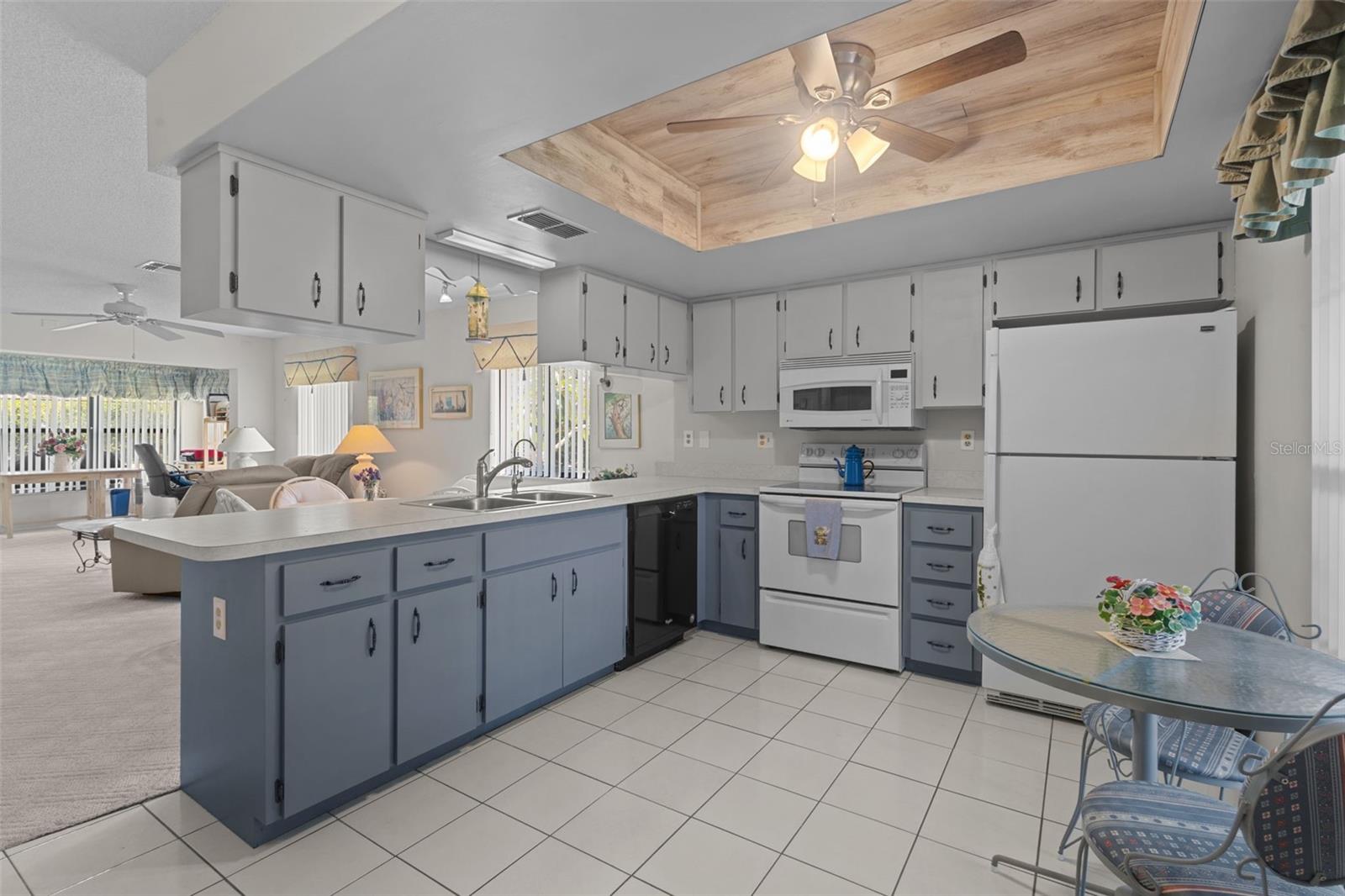 - Interior Features: Ceiling Fans(s), Eat-in Kitchen, Living Room/Dining Room Combo, Open Floorplan, Primary Bedroom Main Floor, Thermostat, Tray Ceiling(s)