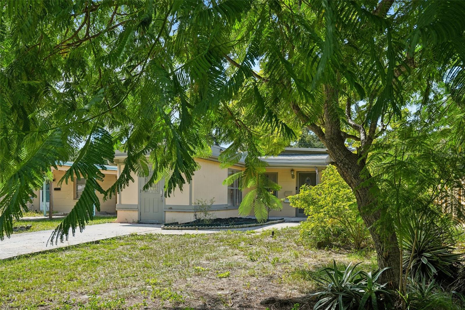 You won’t want to miss this charming St. Pete home, less than 5 miles from beautiful Madeira Beach! Featuring 3 bedrooms and 1 and 1/2 bathrooms, this home offers a smart layout with plenty of potential. The kitchen opens seamlessly to the living room, creating a bright and welcoming gathering space at the heart of the home. Tile floors and updated cabinets bring a modern touch, while the inside laundry room is conveniently located off the kitchen, adds everyday ease. Two bedrooms are tucked away at the back for privacy, while the third bedroom sits at the front with its own private entrance, perfect for guests, a home office, or even an income-producing opportunity. Step outside to a spacious, fenced backyard complete with mature fruit trees, including mango, orange, and custard apple, offering both shade and homegrown delights. With NO HOA or CDD, it’s the perfect place to bring your boat, jet ski or any other water toys. Schedule your private showing today and see the possibilities for yourself!