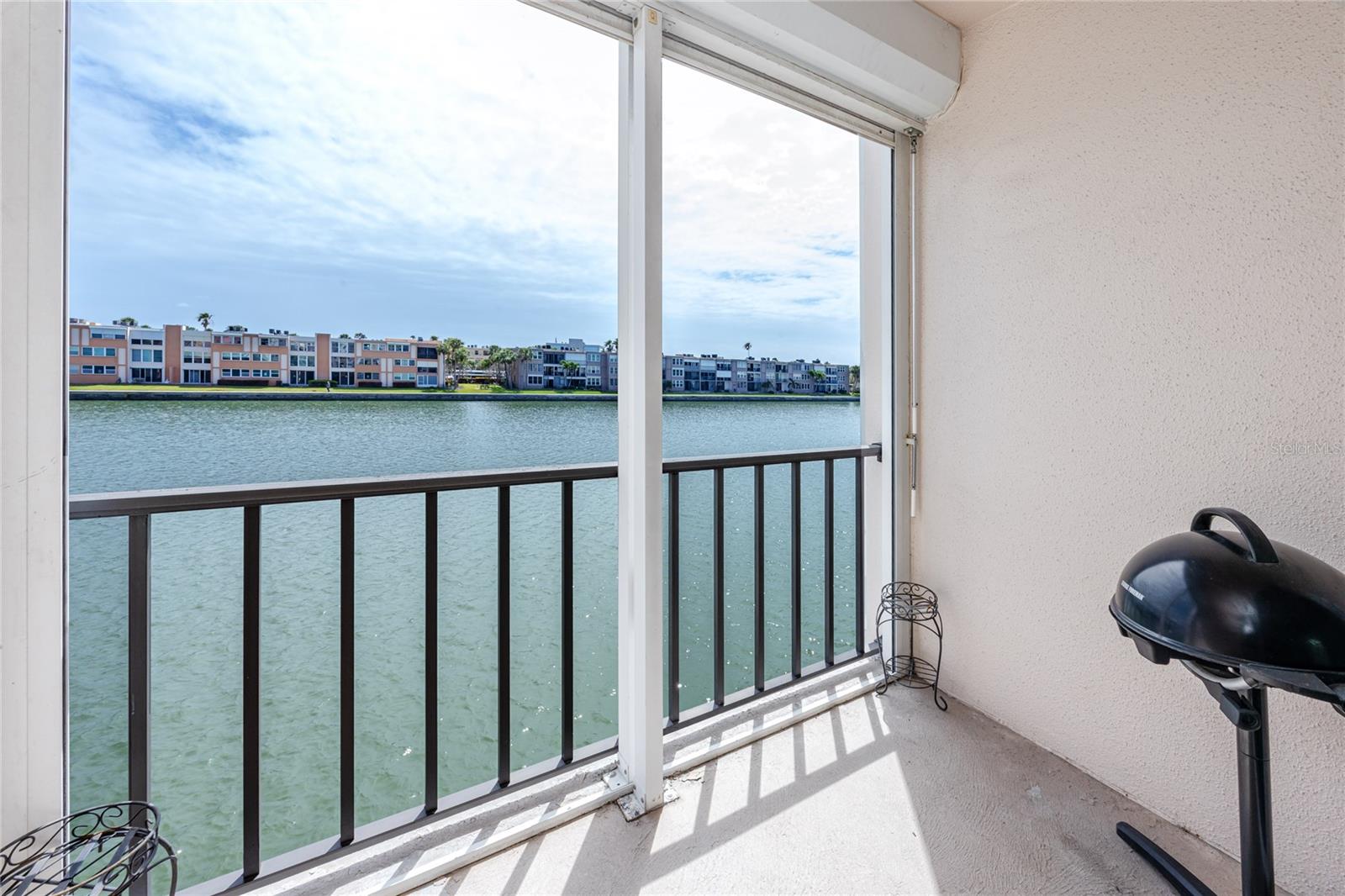 Welcome to Bay Island, a desirable 55+, GATED, waterfront community just minutes from St. Pete Beach and downtown St. Petersburg. This DIRECT BAYFRONT 1BR/1BA condo offers east-facing views of Bay Island Cove and Boca Ciega Bay from a private balcony equipped with a hurricane-rated electric shutter with manual override. The interior features granite countertops, stainless steel appliances, a breakfast bar, updated cabinetry, tile flooring in the living areas and bathroom, and carpet in the bedroom. The spacious primary suite accommodates a king-size bed and includes two closets—one walk-in—plus balcony access and WATER VIEWS. The bathroom includes beadboard wainscoting, a granite vanity, and a walk-in tiled shower with a built-in granite bench. RECENT UPGRADES include high-impact double-pane windows, a new A/C system, and a new water heater—all installed in 2017. A same-floor storage closet and nearby laundry facilities on the 4th floor add convenience. Bay Island offers six heated pools, multiple spas, tennis and pickleball courts, a marina with boat docks (first-come, first-serve), his and hers fitness centers, and a clubhouse with a ballroom, billiards, card room, and craft room. Outdoor amenities include BBQ grills, tiki huts, a 1.5-mile waterfront walking trail, and a waterfront car wash station. The community is walkable to Corey Avenue Market, shops, and restaurants, with public transportation access to the beach. Approximately 15 minutes to downtown St. Pete and 45 minutes to Tampa International Airport. Ideal for full-time or seasonal living.