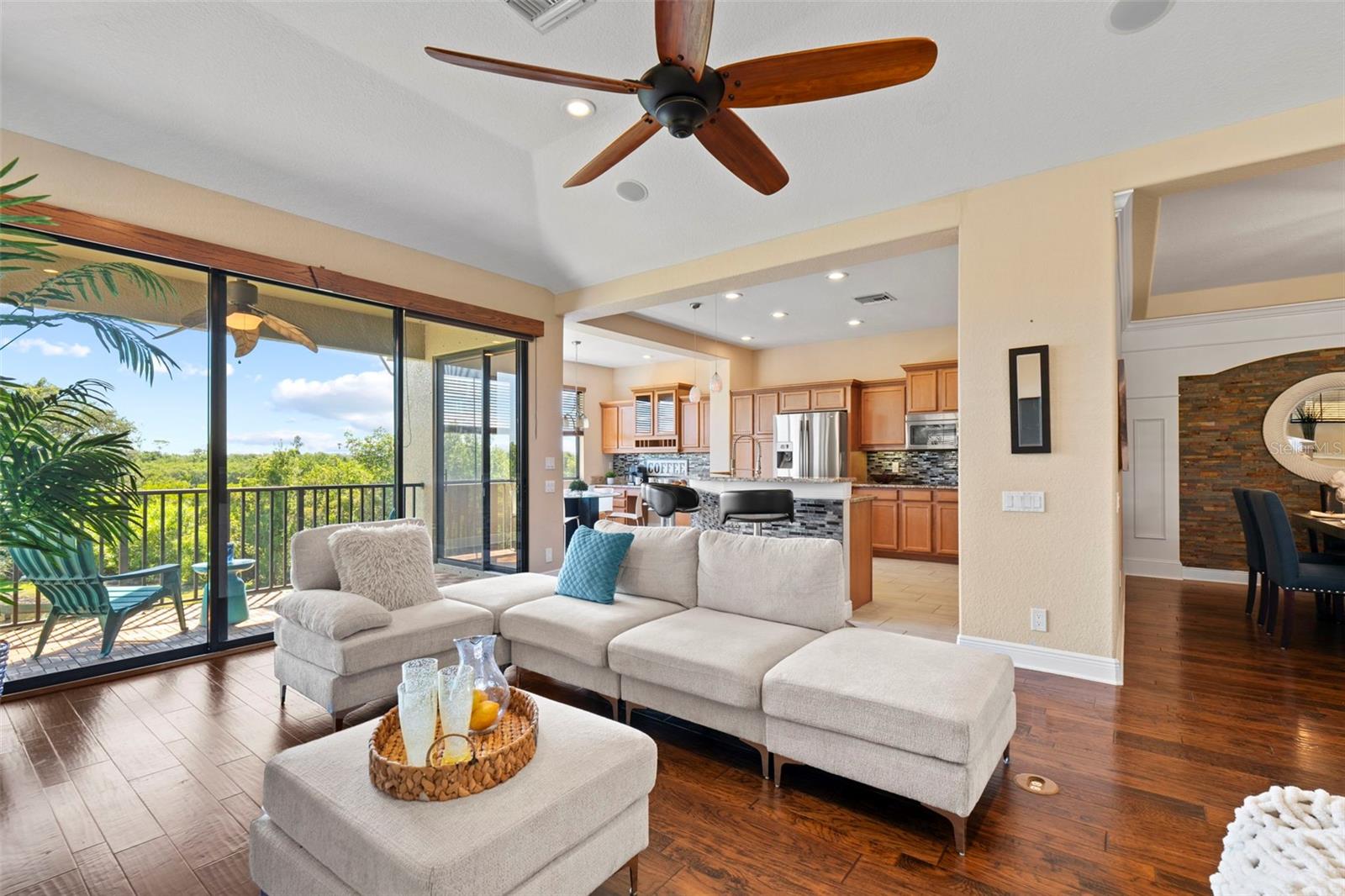 Venture upstairs to the second-floor living area, and you'll be greeted by beautiful hardwood flooring that flows throughout most of the space. The kitchen is a chef's dream, equipped with solid wood cabinets, granite counters, and stainless steel appliances, all while offering private water views and wildlife sightings from the covered balcony. The kitchen's dinette section includes a versatile built-in desk or buffet area and opens to an inviting patio, ideal for savoring your morning coffee. The expansive living room and formal dining area are perfect for relaxing or entertaining friends and family. The bonus loft area serves as a versatile office space or a cozy play area for children.