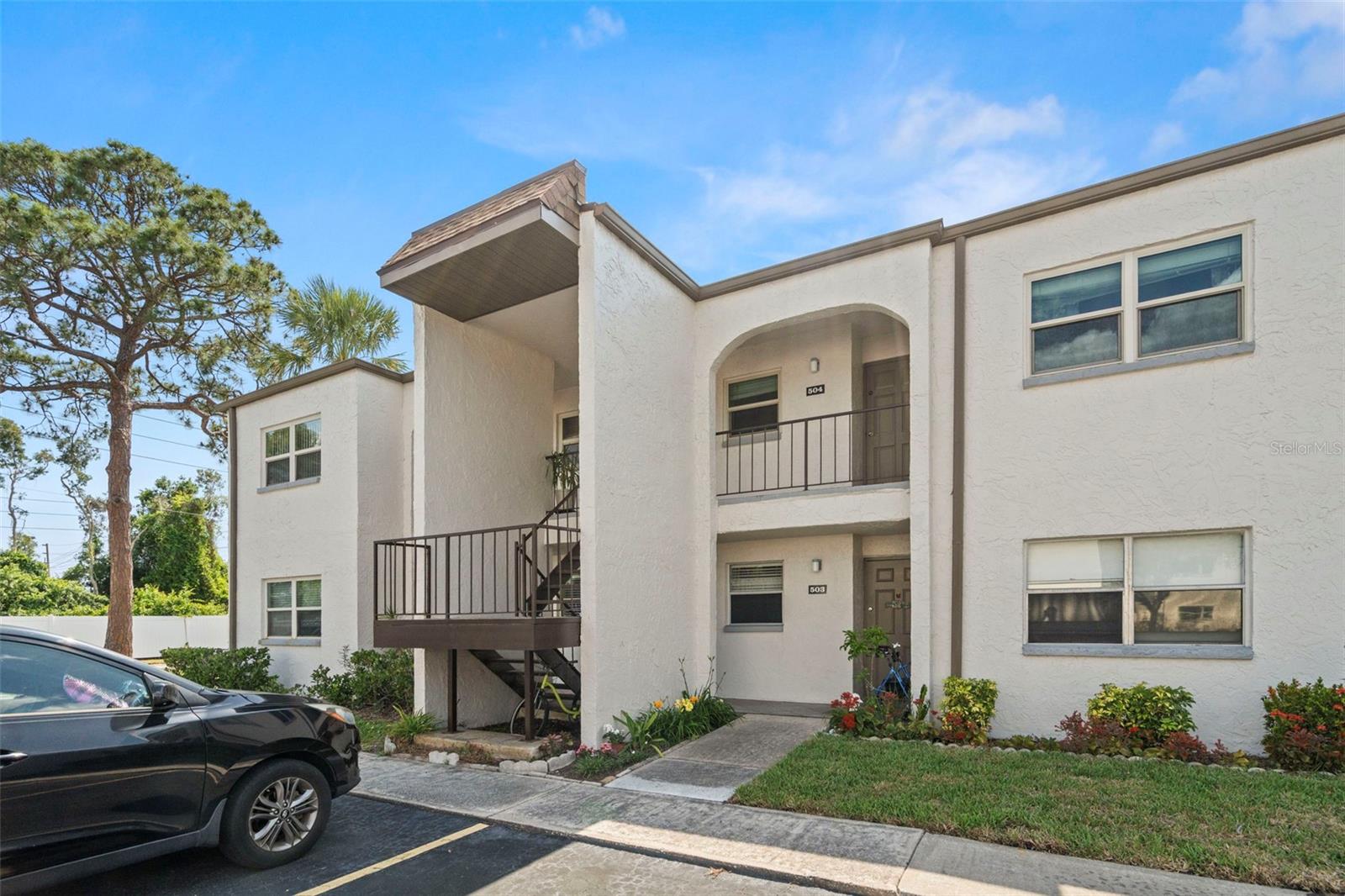 Lovely laminate flooring, light and bright second floor condo. 2 Bedrooms, 1 bath with walk in shower. Closed in Florida Room with sliding windows. The stairway to entrance is split so easy walk up with a landing to entrance. Assigned parking space close to entrance. Short walk to 3 laundry rooms. Each laundry has 6 washers and 6 dryers. The community boasts 2 solar heated pools. When air temperature reached 70 degrees the pools are covered to retain water temperature. There are pickleball, tennis, and shuffle courts available. The pools have large tile shower areas and access to bathrooms. The community has a well-appointed clubhouse with a party hosting area with a complete kitchen for entertaining, with sliding doors to pool. There are grills available at each pool for resident's use. There are 220 guest parking spaces so lots of extra parking beside each owner having 1 assigned parking space. The community is well maintained with lovely plantings. Boulevard Club is located in walking distance to shopping, dining, hair and nail salons. A short drive to Lake Seminole Park with walking trails, boat launch, and playground and lots of picnic areas. 2 miles to Bardmoor for shopping, dining, and a medical facility. Minutes to Gulf Beaches and easy access to St Pete Clearwater Airport, and Tampa Airport. 55 plus Community one resident residing there must be 55 plus. The low monthly condo fee includes cable and internet. Come see this condo you will want to call this home.