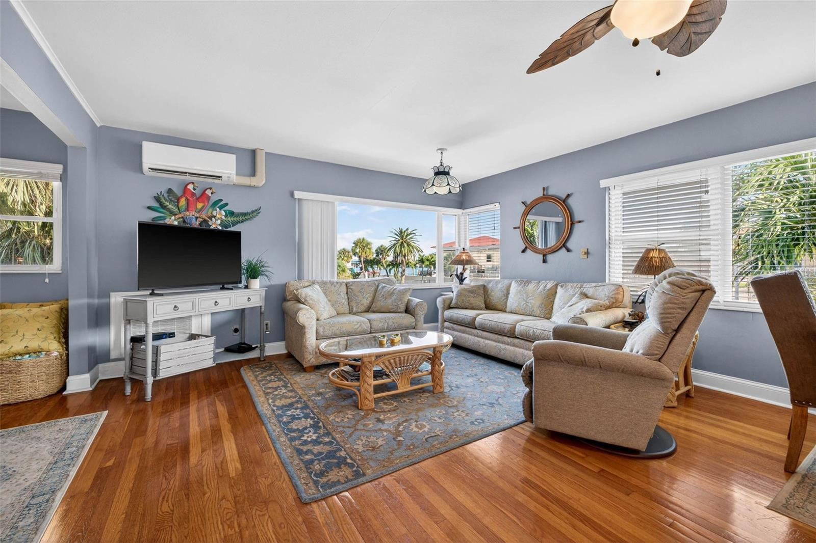 Welcome home to this beautiful fully furnished 2-bedroom, 1 1/2 bath condo offering water views from every window. Located on the second floor end unit, this residence sustained no storm damage and features a bright, open floor plan where the living room, kitchen, and dining areas flow seamlessly together, highlighted by hardwood floors throughout. The spacious primary bedroom is thoughtfully designed with a private half bath, generous closet space, and abundant storage. Enjoy stunning views of Boca Ciega Bay, the waterfront pool, and the community dock, creating a serene coastal backdrop for everyday living. Perfectly situated just steps from Horan Park and the St. Pete Beach Recreation Center, and moments from the shops and restaurants of Corey Avenue and Blind Pass, this condo offers the best of beachside living. Convenient yet private, this is truly coastal living at its finest.