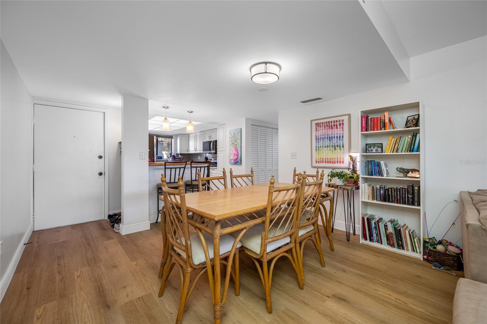Ground-floor convenience with easy accessibility and no stairs to contend with. Be greeted by lots of natural light in this inviting open concept layout.Gorgeous and bright kitchen all remodeled in 2022, new cabinets, gleaming quartz counters, appliances all 2022-2024 complete with a convenient breakfast bar.