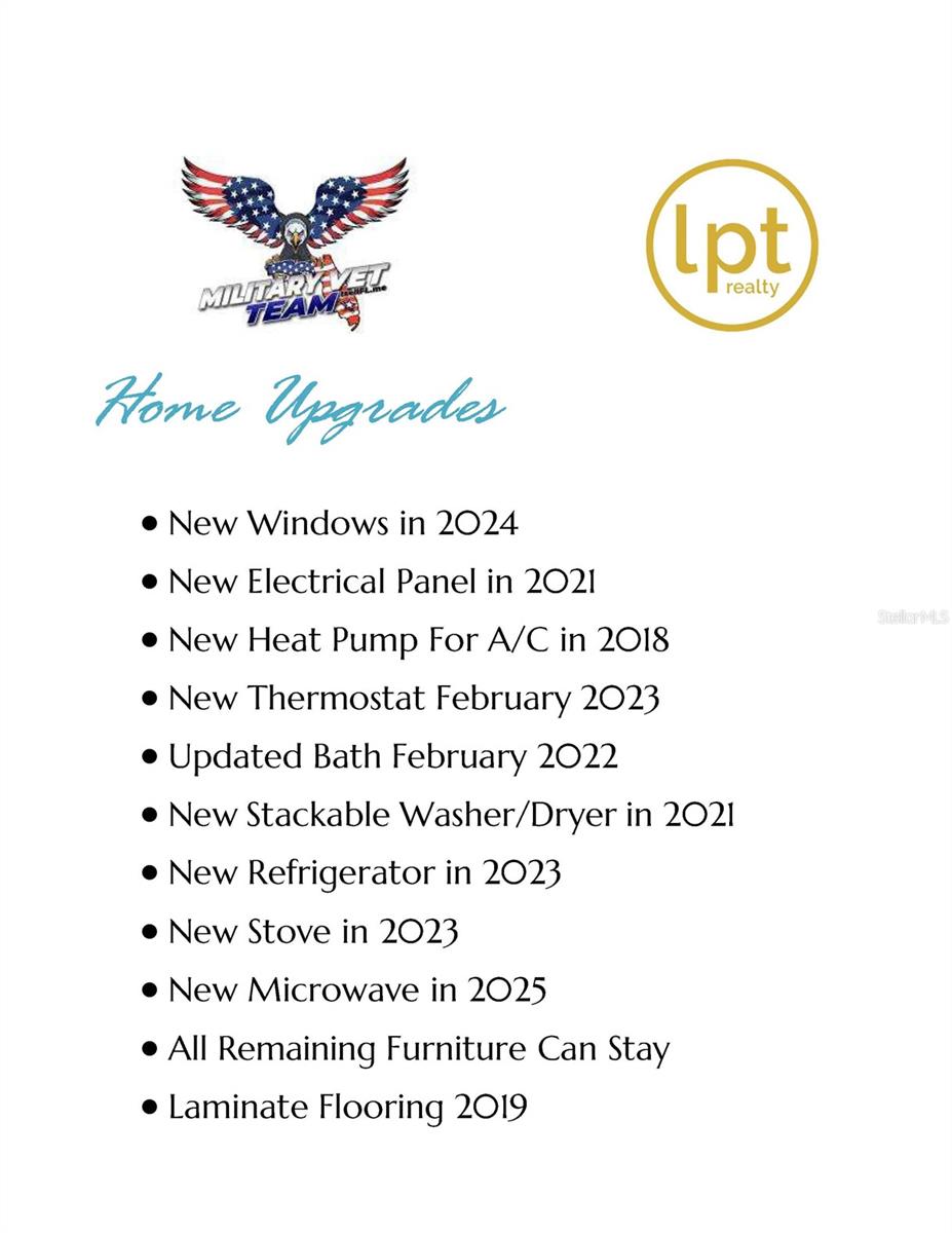 Welcome to your Florida getaway! This beautifully updated 2-bedroom, 1.5-bath home is located in a well-maintained 55+ co-op community—and you own your share, so there’s no lot rent! Move right in and start enjoying the sunshine, as this home comes mostly furnished and features a desirable split floor plan.The kitchen impresses with stainless steel appliances, including a 2023 refrigerator, 2021 range, and a brand-new 2025 microwave. The main bath was fully remodeled in 2022 with a walk-in shower and a stackable washer/dryer (2022) for convenience. Other major improvements include a 2021 electrical panel, new windows in 2024, and a 2018 heat pump providing efficient central A/C. Hurricane straps offer extra protection during storm season.