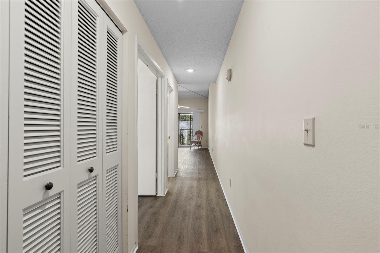 Welcome to River Oaks—Tampa’s hidden gem nestled along the peaceful Hillsborough River. This updated second-floor 1-bedroom, 1-bath condo is located in a private, guard-gated community featuring two sparkling pools, lush tropical landscaping, and unbeatable convenience to everything the city has to offer. Inside, you’ll find vaulted ceilings, brand new luxury vinyl plank flooring, and a bright, open living space that flows into a screened-in balcony with serene views of mature trees—a perfect spot to unwind. The kitchen offers plenty of prep space, while the central A/C and in-unit stackable washer and dryer add everyday ease. The spacious primary bedroom features a large walk-in closet, providing both comfort and functionality. Plus, an assigned covered parking space sits just outside for added convenience. With quick access to I-4, I-275, USF, local dining, and shopping, this location works for just about any lifestyle. Whether you're looking to live in it full-time or enjoy it as a weekend retreat, this upgraded unit in the gated River Oaks community is a must-see.