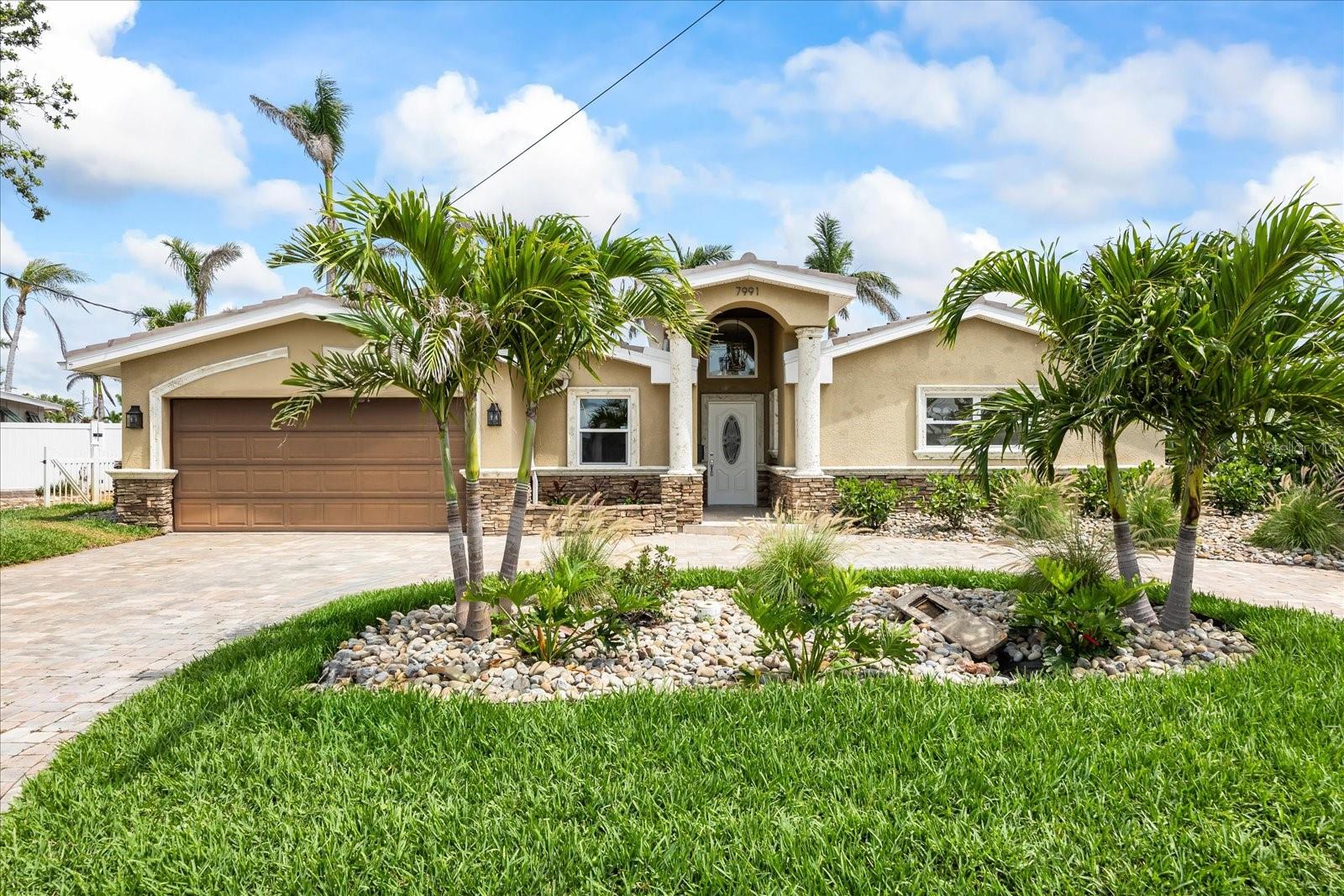 This is a must-see home—fully remodeled with impeccable taste and attention to detail throughout! Nestled in the highly desirable waterfront community of Causeway Isles, this stunning residence offers the perfect blend of luxury, style, and coastal living. Step inside to discover a bright, open floor plan, 4 bedrooms, 2 bathrooms, with all-new walls, outlets, luxury vinyl and tile flooring, solid wood cabinets, quartz countertops and backsplash. The chef’s kitchen shines with brand-new appliances, a double oven, dishwasher, lots of cabinets, an island with storage, floating shelves, and a beautiful water view. There is a spacious butler's pantry with sink off the kitchen which can double as a mud room, with a plethora of cabinets for storage, and large separate laundry room for added function. You will love the stylish wine bar complete with wine refrigerator—perfect for entertaining. Every detail has been thoughtfully upgraded: Gorgeous new light fixtures throughout, Modern vanities and sinks in fully renovated bathrooms, a sunroom featuring all-new windows and slider, perfect for game night or relaxing with a good book. Primary Bedroom has double vanity in the en-suite bathroom, walk-in closet with custom built-ins, and a slider direct to the pool and backyard. Outside, enjoy a private pool and spa, (salt system), boater’s dream amenities including a dock, davits, 10,000 lb boat lift, and no fixed bridges for quick Gulf access. New roof in 2021, paver driveway 2023. Installed after storms: new pool pump and pool heater, new HVAC system with warranty, new electric water heater. Property treated for pests inside and out monthly, lawn treated with fertilizer when appropriate, cut and trimmed weekly. Located just 2 miles from Treasure Island beaches and minutes from vibrant downtown St. Petersburg, you’ll love the proximity to dining, music, art, and the scenic Pinellas Trail. This turnkey coastal retreat truly has it all—schedule your private tour today!