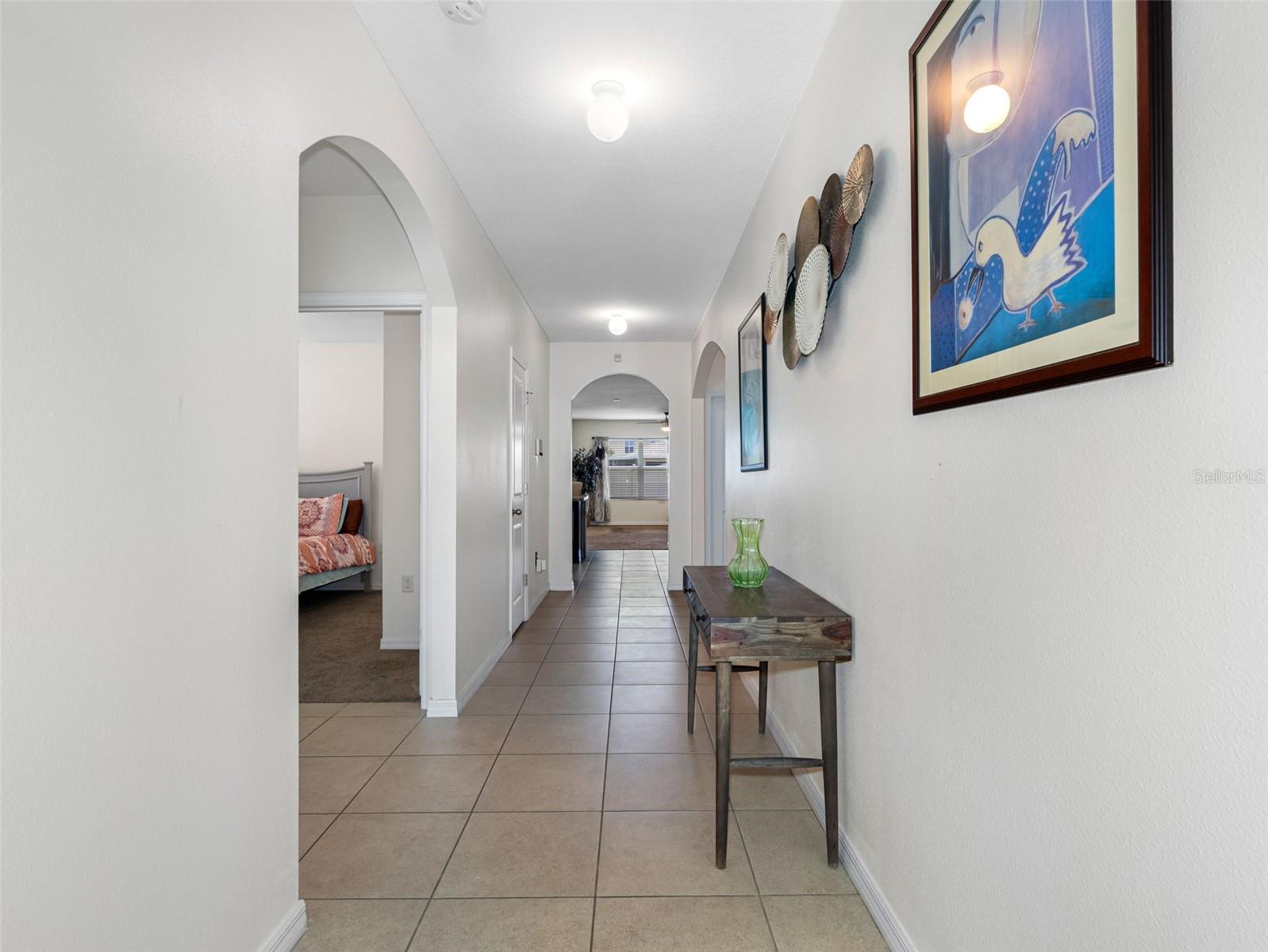 This appealing one owner, super clean and gently lived in one-story home offers 4 bedrooms, 2 baths and includes many contemporary features such as an open-concept design with 8’8" ceilings. The kitchen includes a large island perfect for bar-style eating or entertaining, a walk-in pantry, and plenty of cabinets and counter space with black appliances. The dining room and living room both overlook the covered lanai with a peak-a-boo water view, which is a great area for relaxing and dining al fresco. The large owner’s suite is located at the back of the home for privacy and can comfortably fit a king size bed and includes an en-suite bathroom with double vanity, huge walk-in closet and separate linen closet. Three other spacious bedrooms share a second bathroom. Laundry is a breeze with a indoor utility room equipped with a washer and dryer, and an extra storage closet outside the 4th bedroom. Plenty of storage in your two-car garage. Enjoy coming home to this lovely community lined with mature oaks, palms and crape myrtles on your drive in. Walk to the community center where you can enjoy a resort-style pool, cabana, playground, basketball courts, tennis court, sidewalks and more! Make an appointment to view this beautiful home today! Please note furnishings have been virtually staged in some photos.